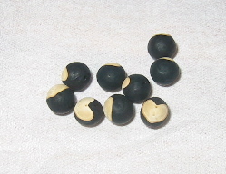 風船かずらの種は、黒い種子の上にある白色の