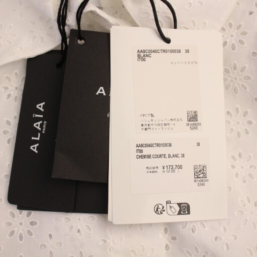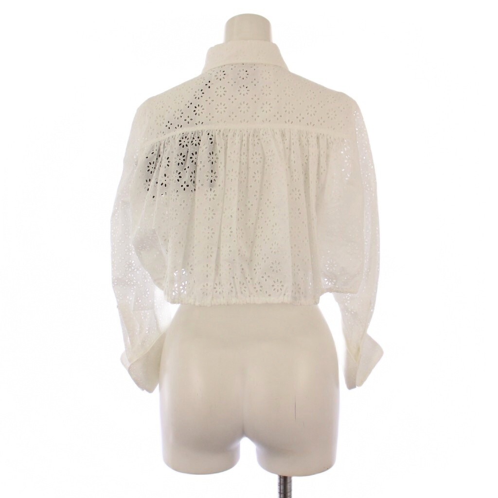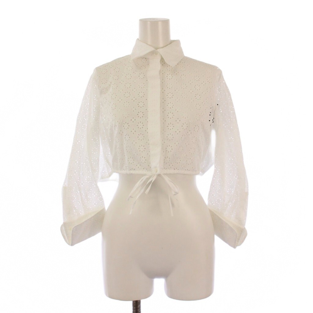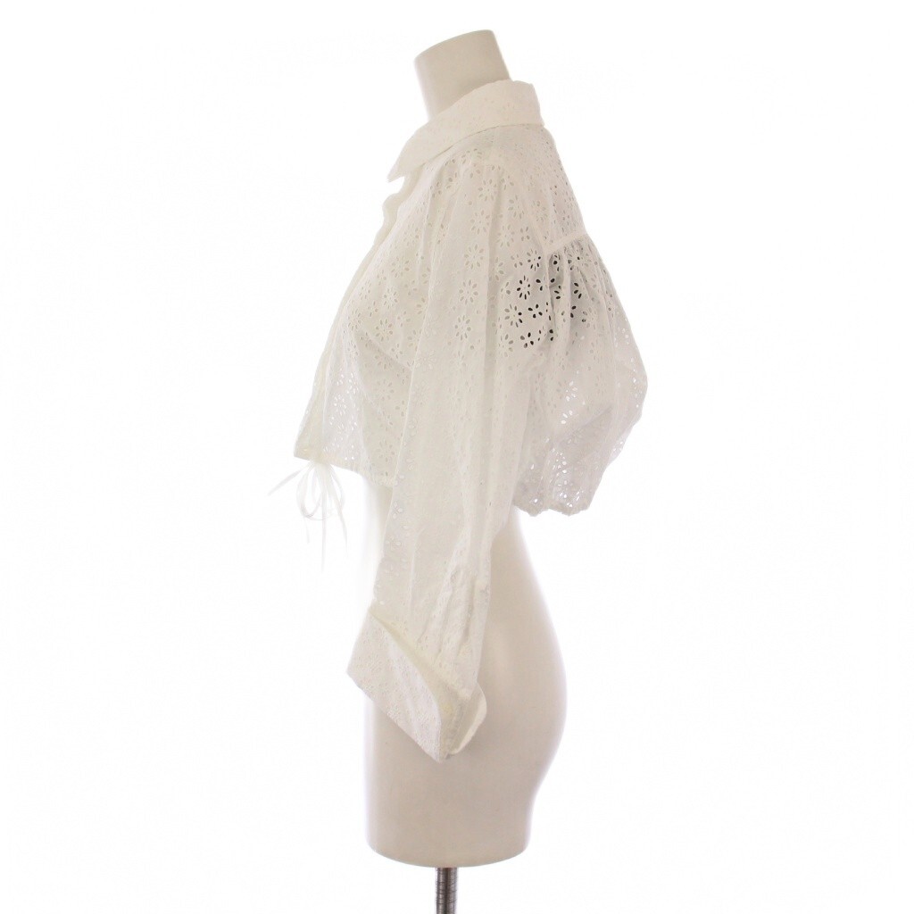 未使用品 アライア ALAIA クロップド ブロデリー アングレーズ シャツ ブラウス 七分袖 38 白 /BM レディース