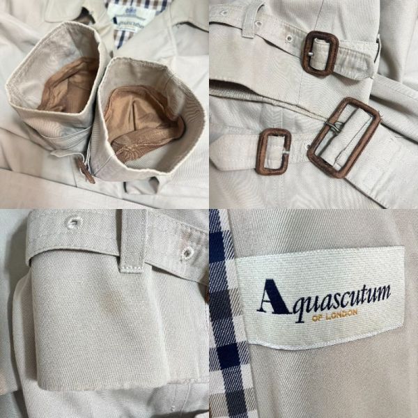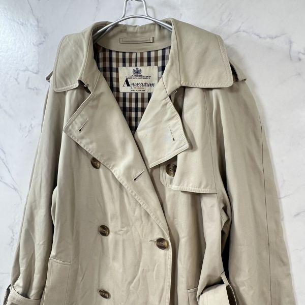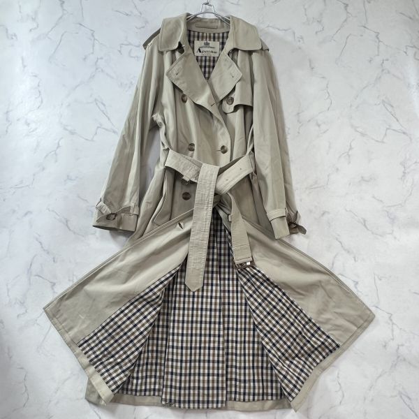 アクアスキュータム トレンチコート ベルト ロングコート チェック ベージュ系 レディースM~L Aquascutum B1481