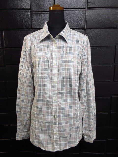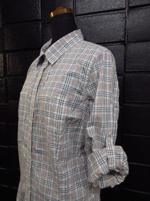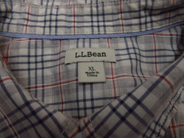 t4559 LL Bean 長袖シャツ トップス レディース 薄手/袖口ロールアップ 綿100% サイズXL ライトグレー系/チェック柄 エルエルビーン