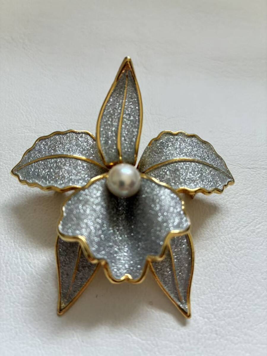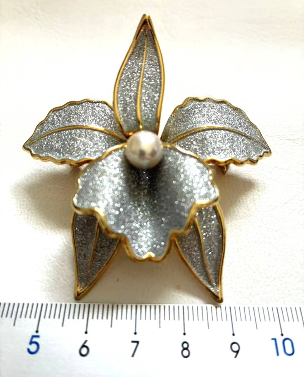 ユリ花造形ブローチ兼ペンダント・真珠トップ・両用アクセサリー