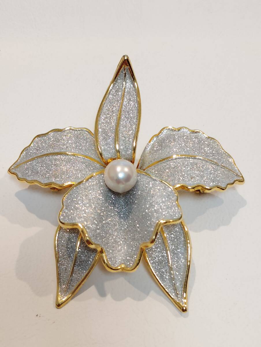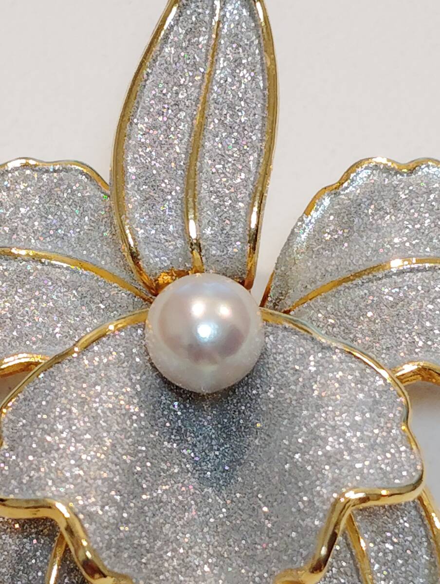 ユリ花造形ブローチ兼ペンダント・真珠トップ・両用アクセサリー