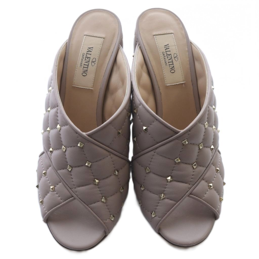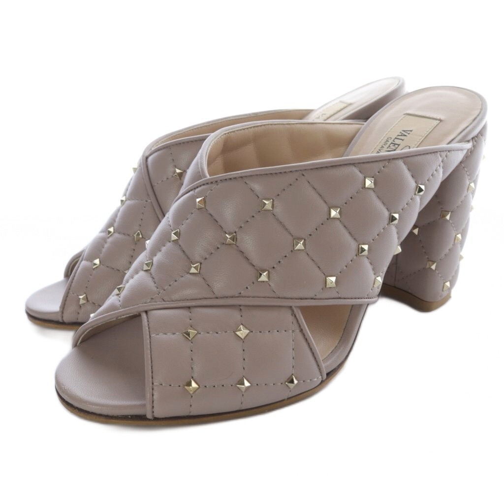ヴァレンティノ ガラヴァーニ VALENTINO GARAVANI キルティング ロックスタッズ サンダル ミュール 36 ピンクベージュ /SR レディース