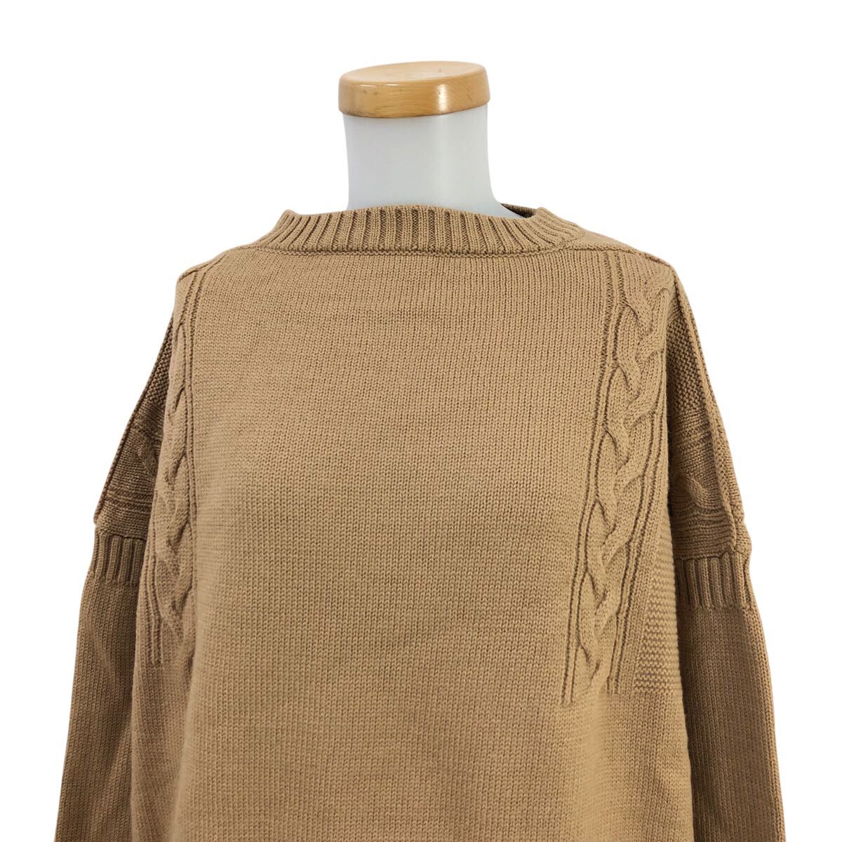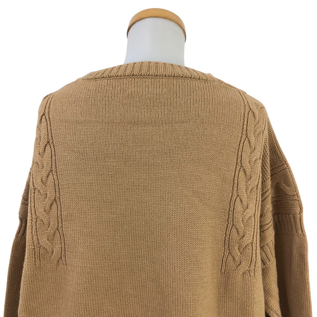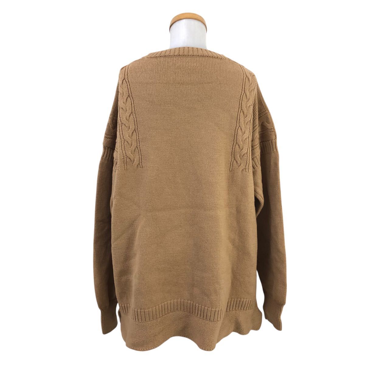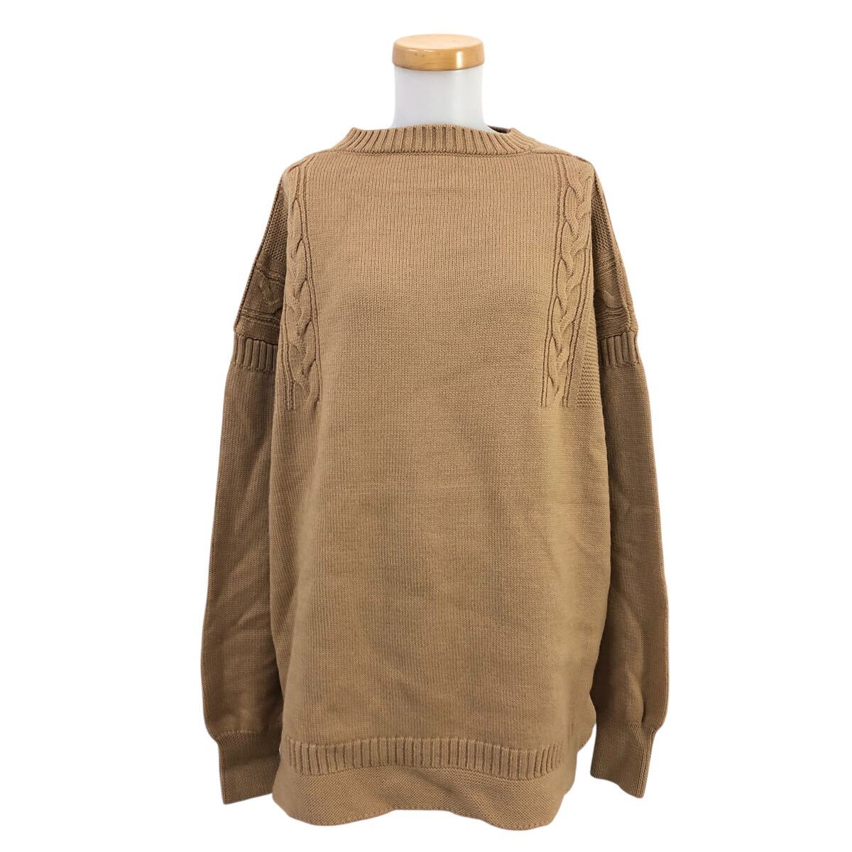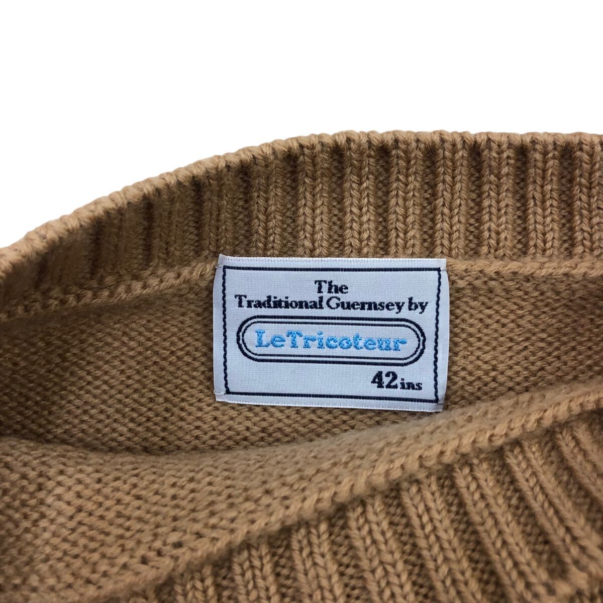 9m654-37 大きいサイズ LE TRICOTEUR ル トリコチュール ガンジーセーター ウール 長袖 ニット トップス ベージュ レディース 42