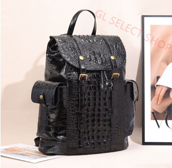 新品 クロコダイル本革 ワニレザー メンズバッグ 双肩掛け リュックサック 大容量 本革 センター取り アウトドア デュアルショルダーバッ