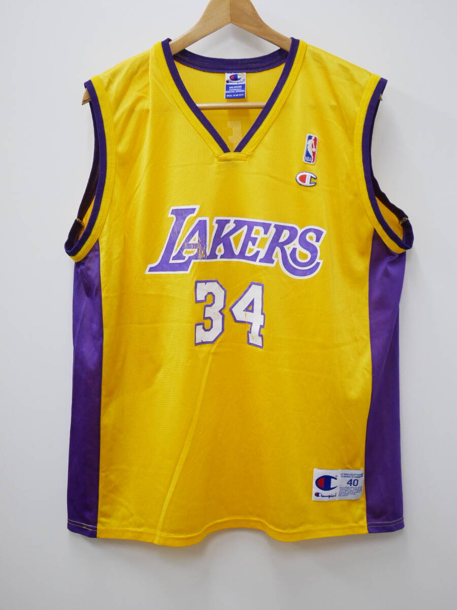 37W レイカーズ シャキールオニール ユニフォーム NBA Los Angeles Lakers 90s Champion製 ゲームジャージ ビンテージUSA古着 ※2
