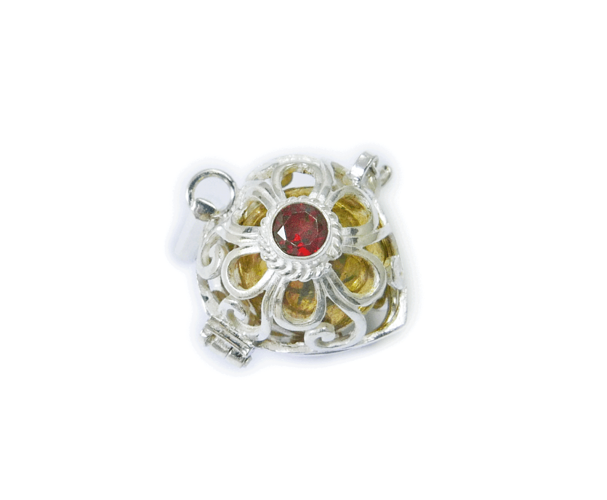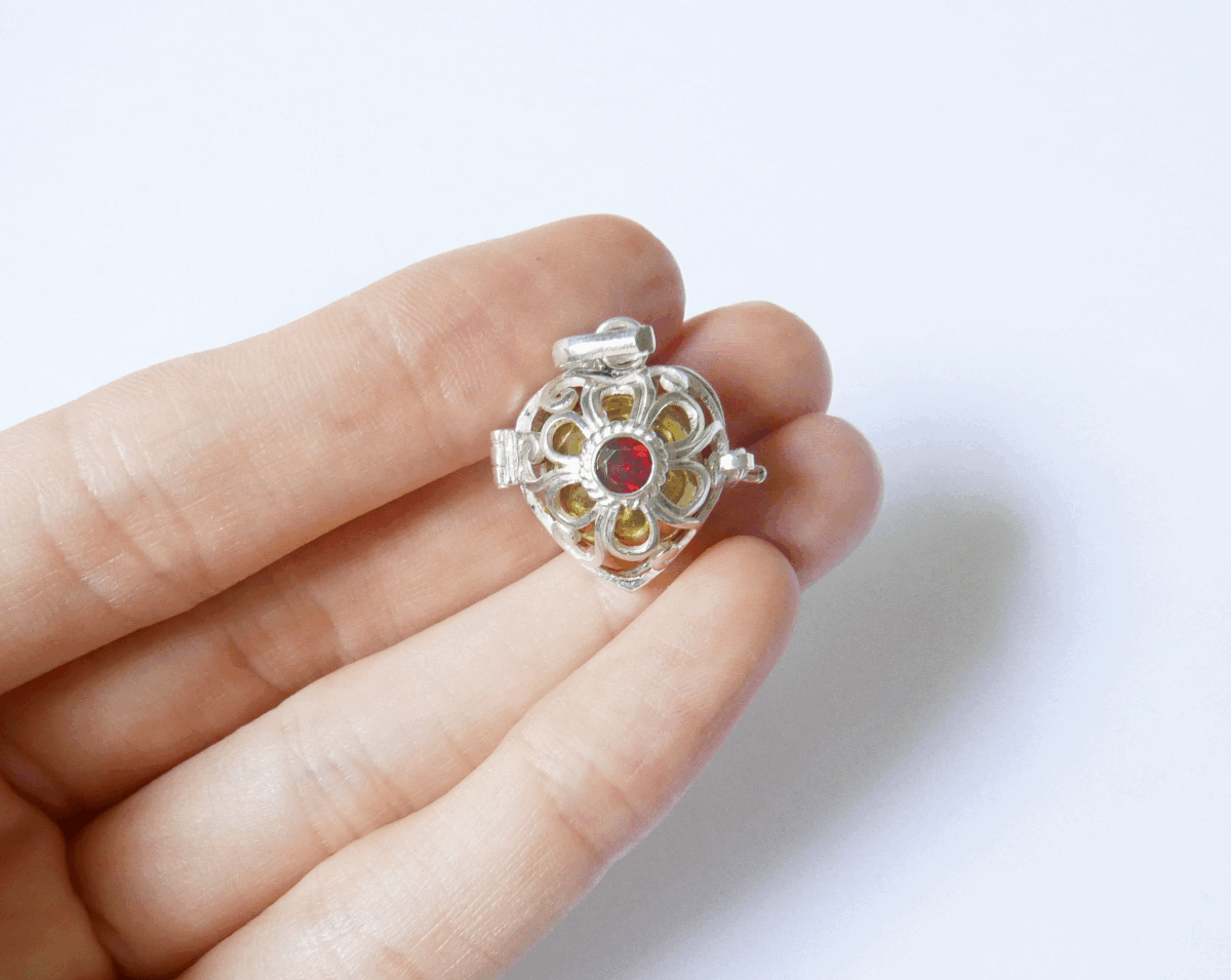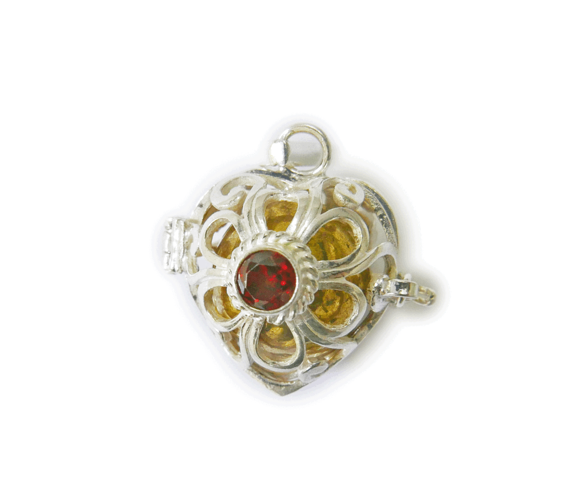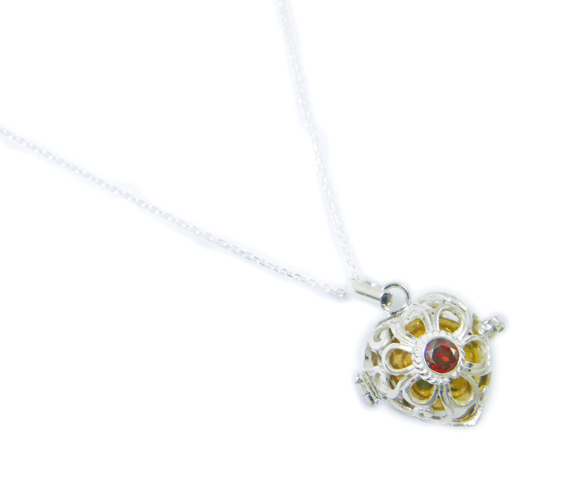 送料無料☆☆ガーネットのハート型のガムランボール☆☆揺らすとシャラン♪癒しの音色が響く・幸運のヒーリングペンダント☆☆プラチナ加工