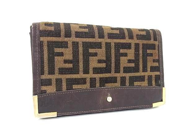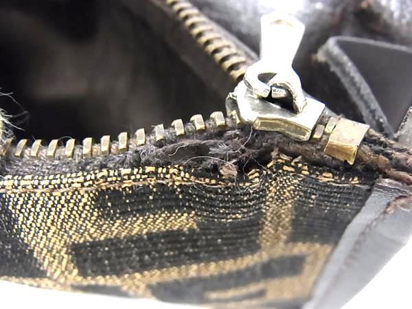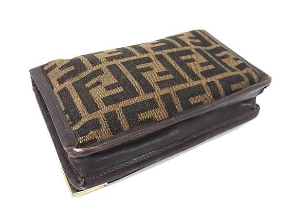 FENDI フェンディ ズッカ柄 キャンバス×レザー ポーチ マルチケース 小物入れ レディース メンズ ブラウン系 DI2130
