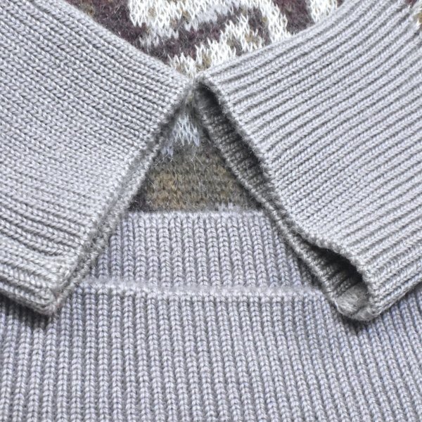 両面総柄の鹿柄のニットで、ウール混の素材でモヘア混合の一着です。