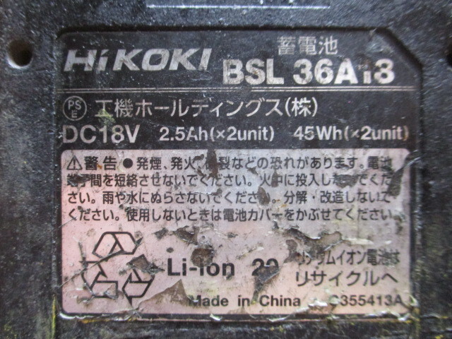 ●ハイコーキ HiKOKI 工機ホールディングス バッテリー BSL36A18 18V 2.5Ah 2個セット ジャンク品
