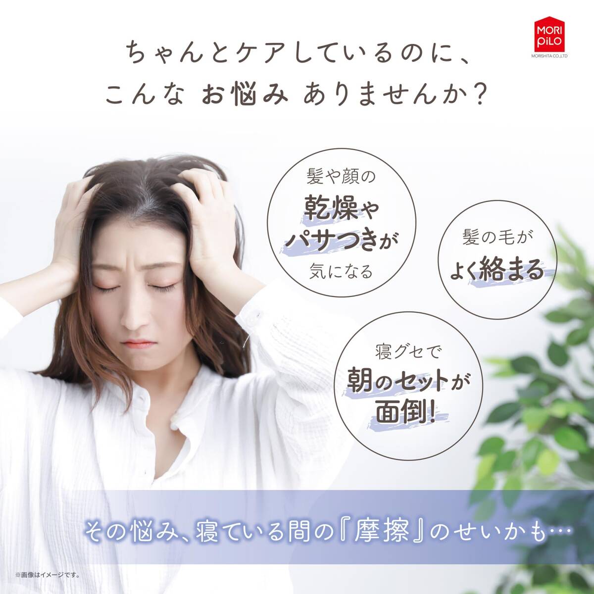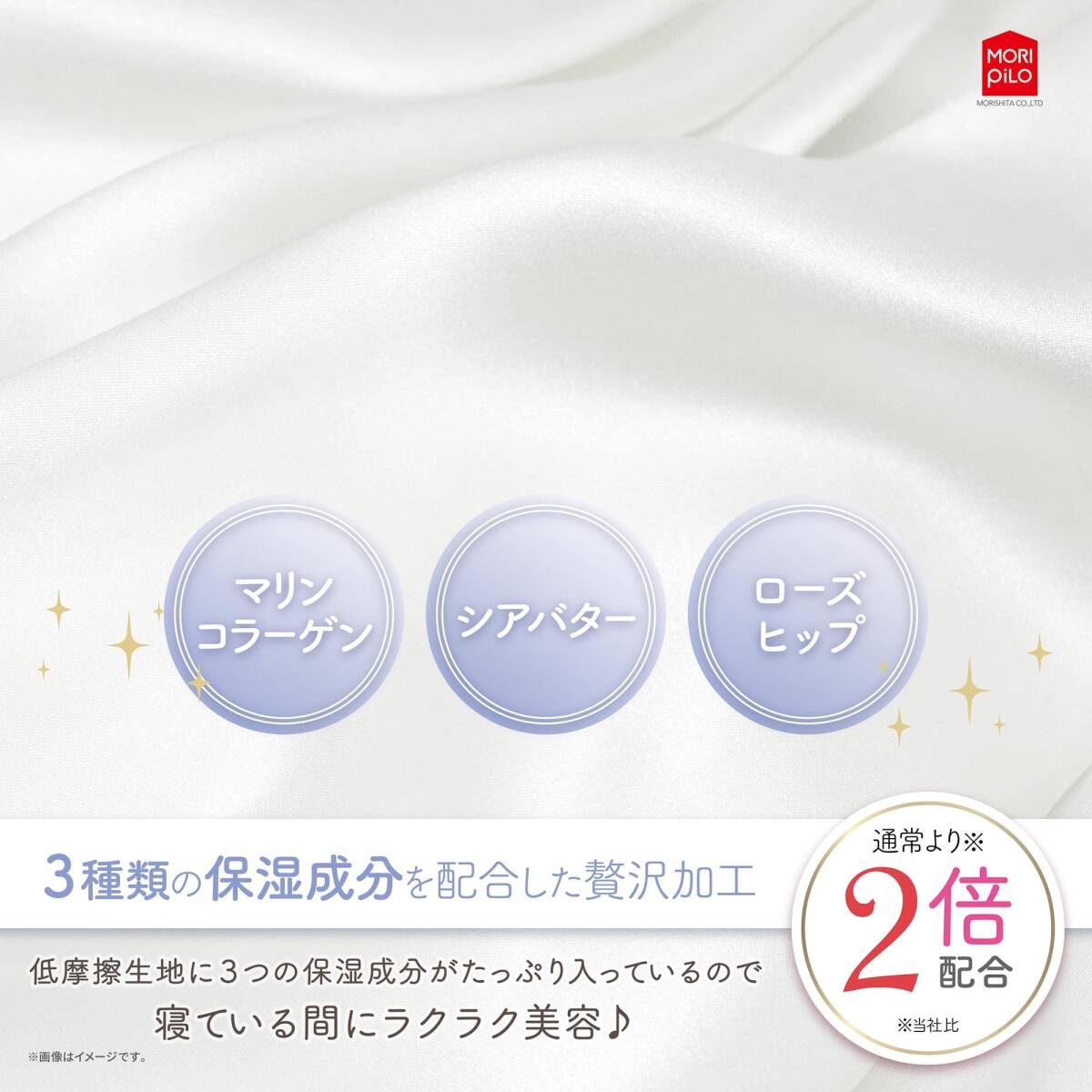 ・こだわりの【 低摩擦生地 】に【 3つの保湿成分 】をたっぷり配合(マリンコラーゲン・シアバター・ローズヒップ)。なめらかで髪とお肌にやさしい枕カバーです。
