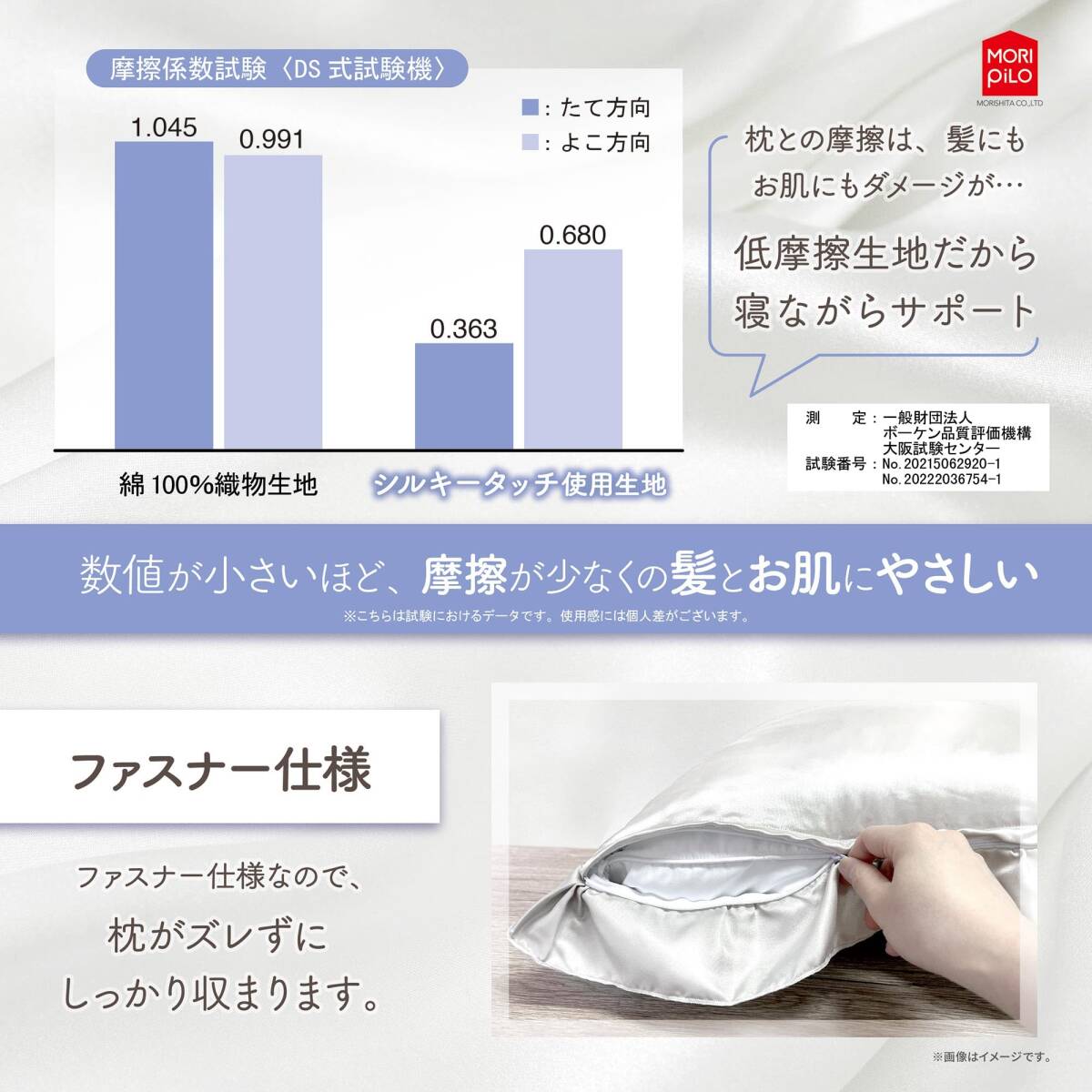モリピロ(MORIPiLO) シルク枕カバー シルキータッチ 洗える フリル付き ホワイト 白 43x63cm なめらかな肌触り 3つの保湿成分
