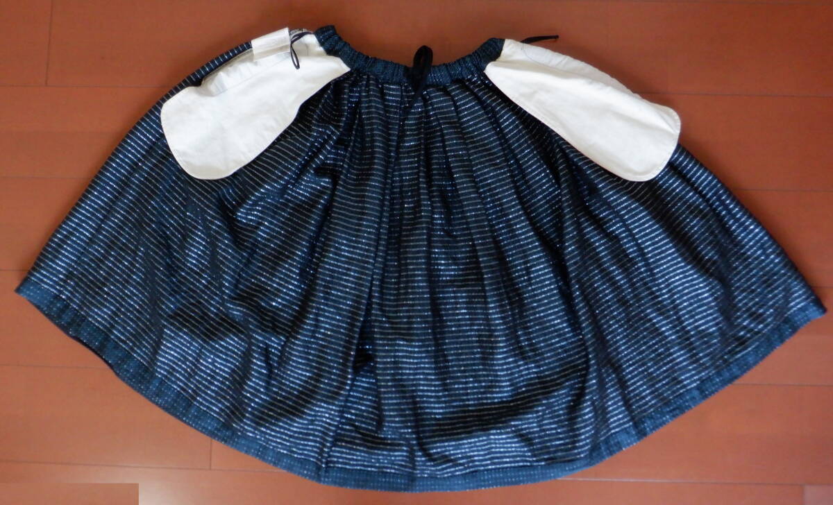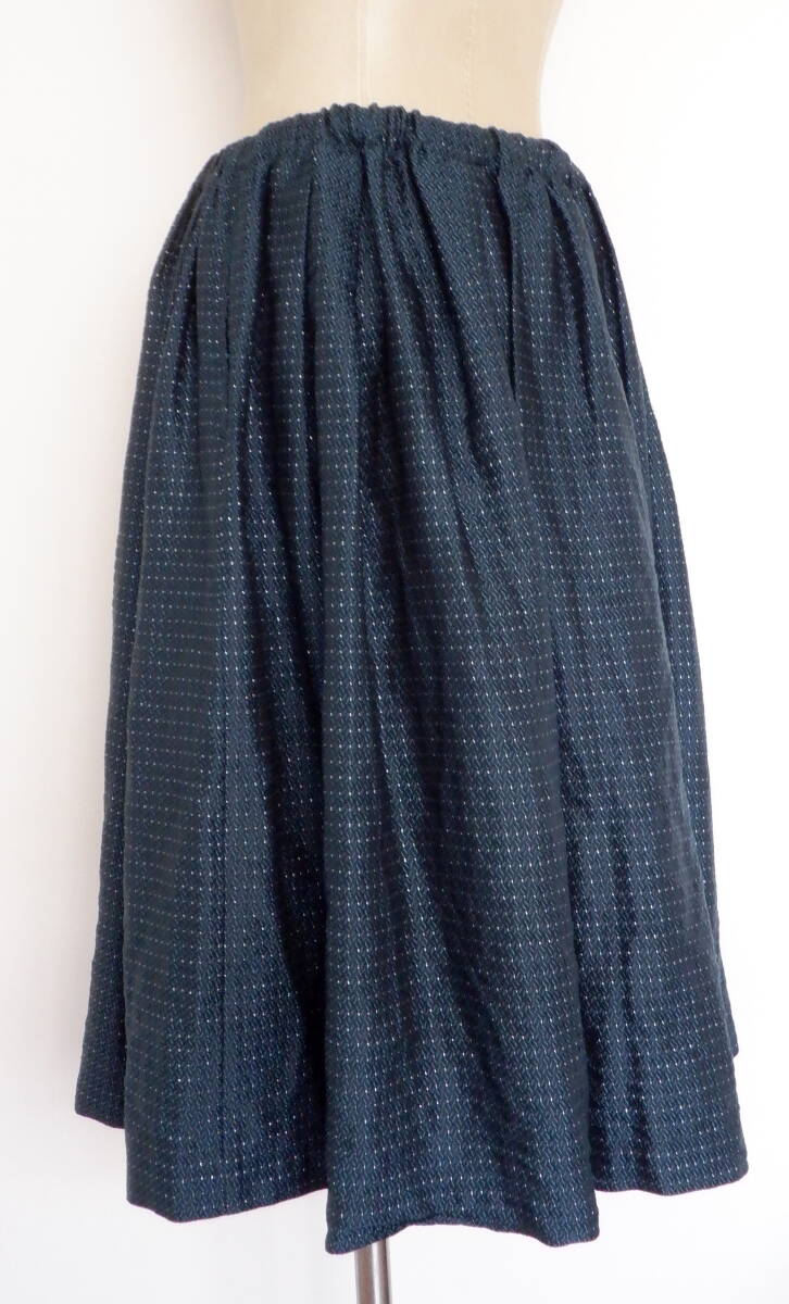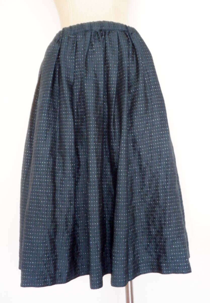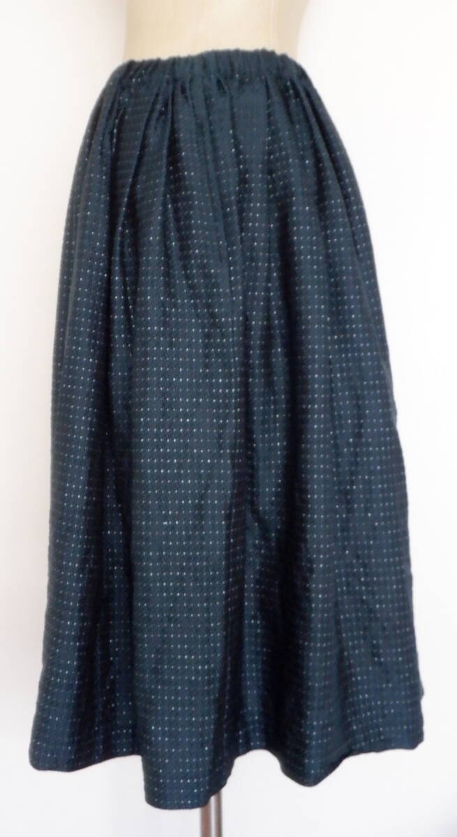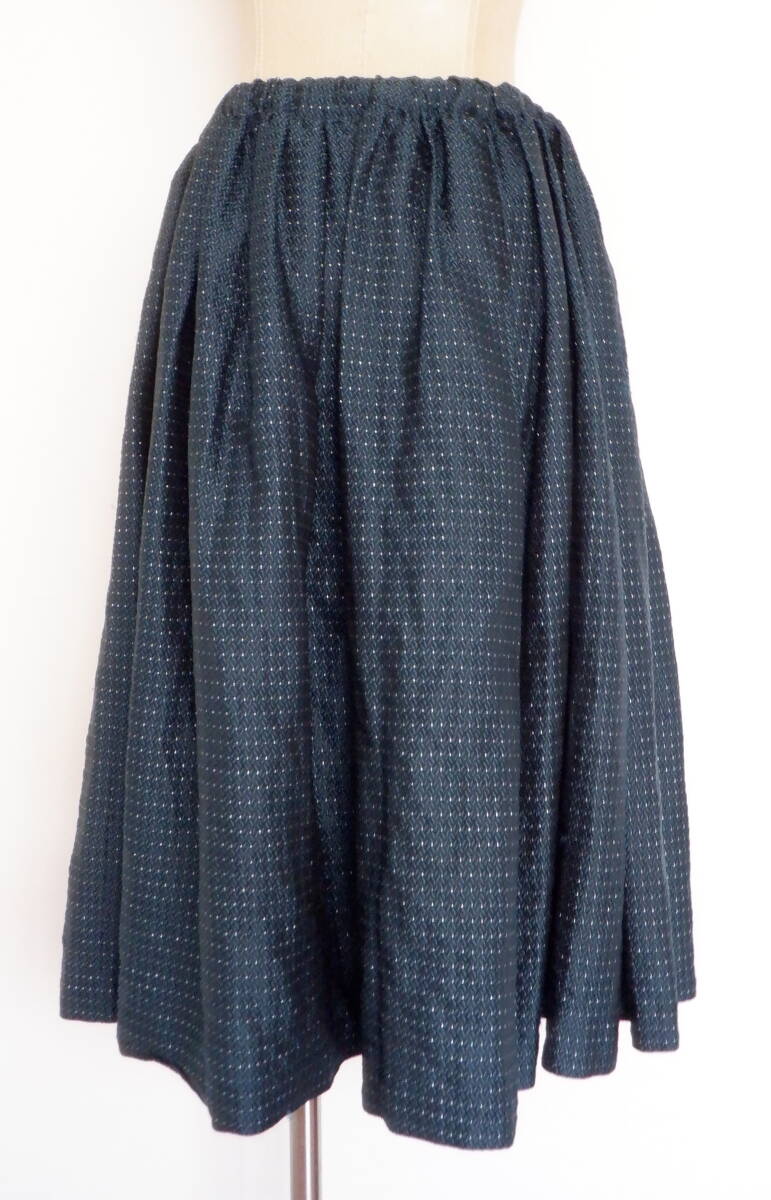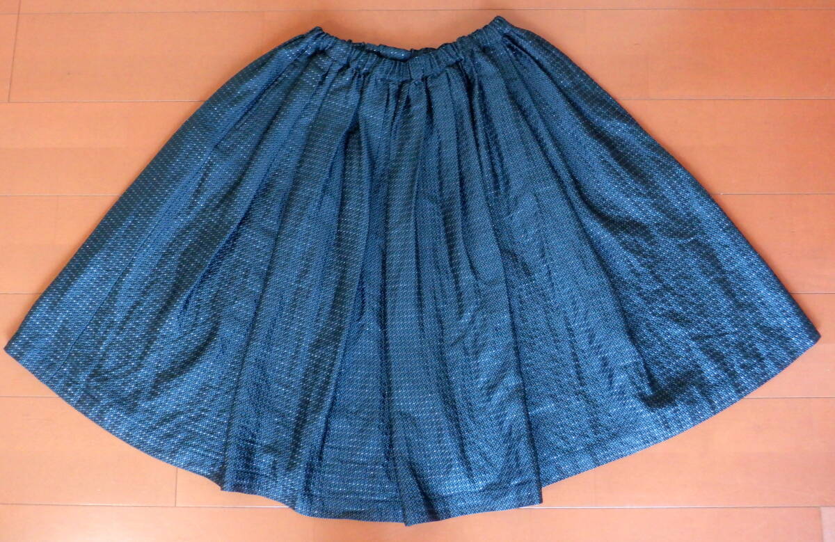 ●10 コムデギャルソン 柄 ロング スカート 緑 黒 銀 ボトムス レディース S ゴム 紐 COMME des GARCONS 豪華 シルバー 光沢 キラキラ