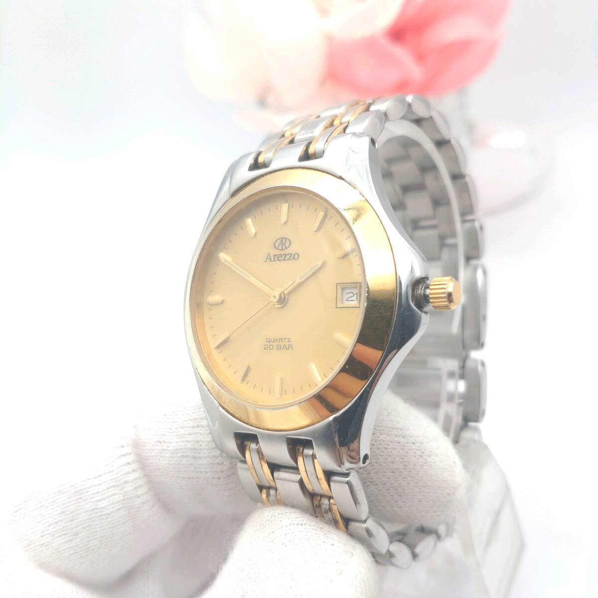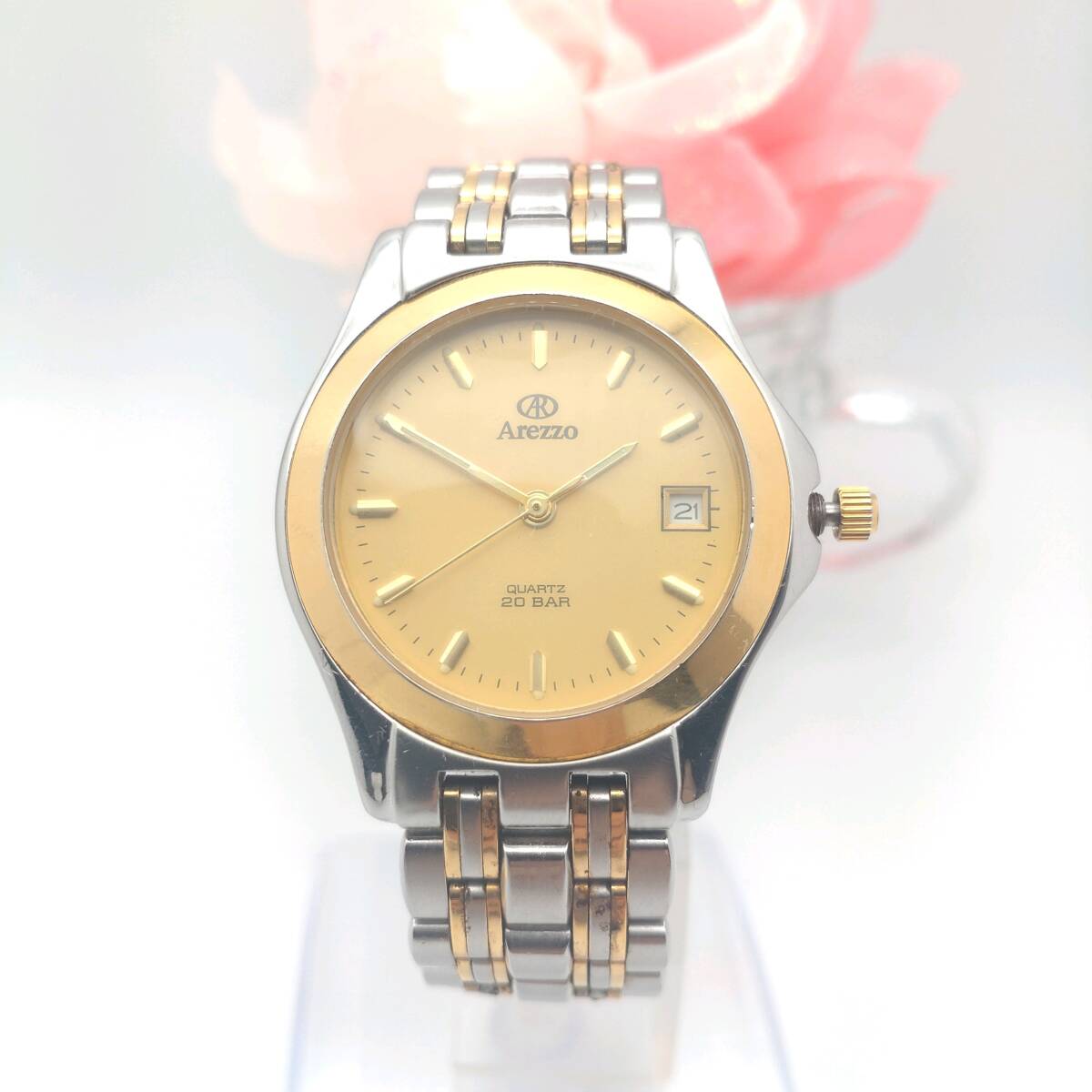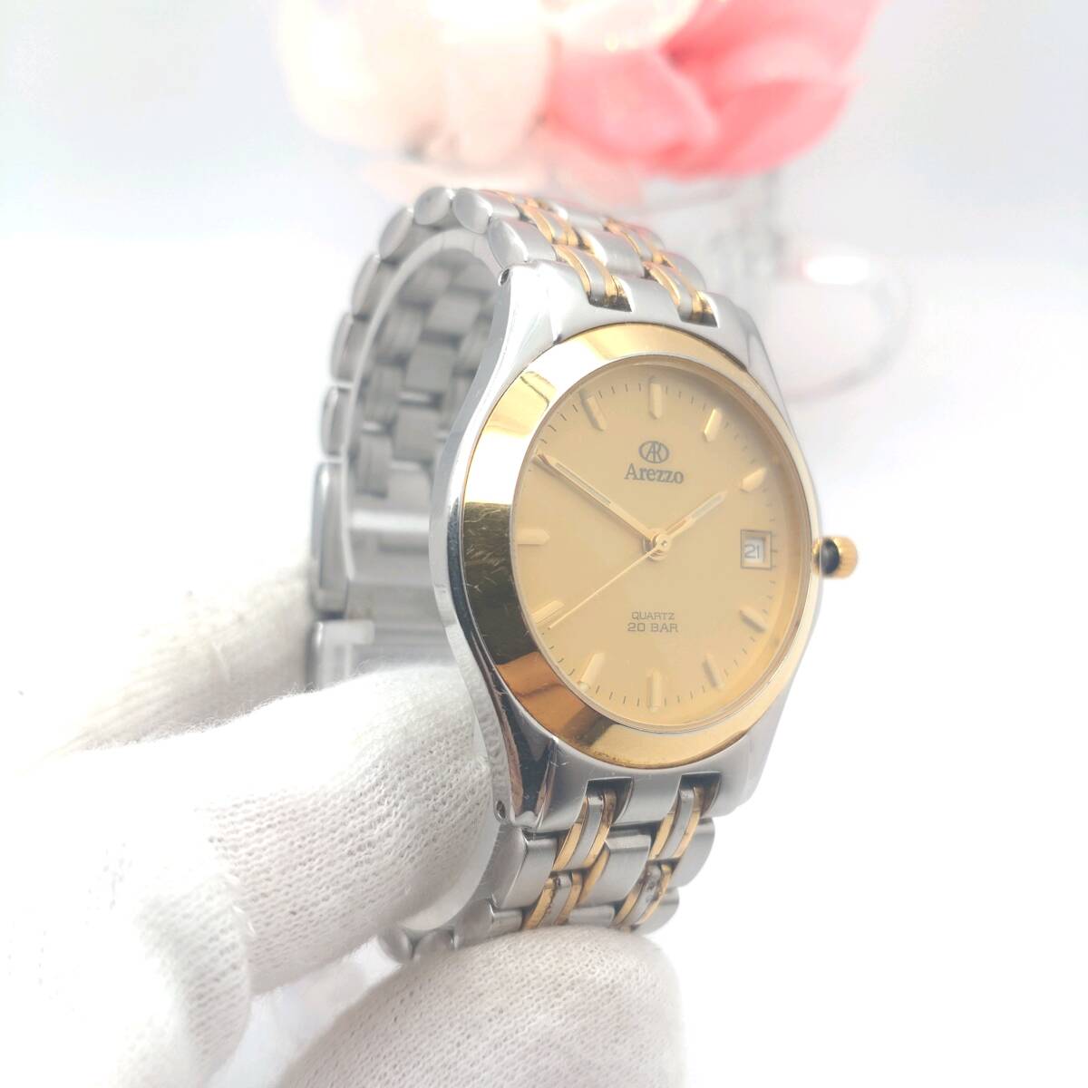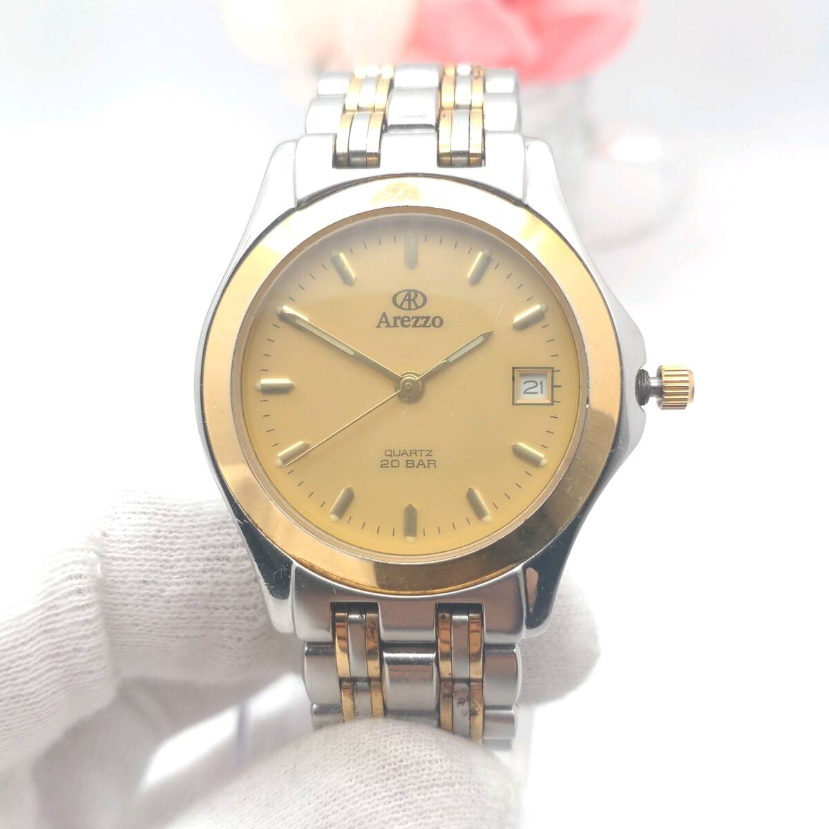《稼働品》Arezzo★アレッツォ★クォーツ 腕時計★デイデイト★カレンダー★メンズ★ゴールド系★管理 674f