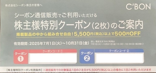 ★シーボン株主特別 クーポン (2枚)( クーポン①、クーポン②)★10/31まで★割引券