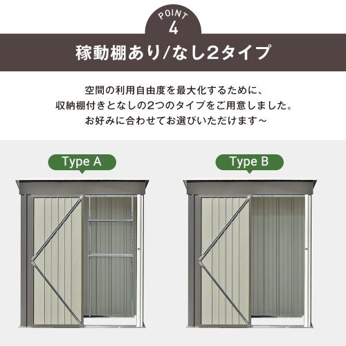 ◆01たっぷり収納できる大きなスペース コンパクトサイズで1897Lの容量のモノを収納可能。 ガーデン用具や室内に置きにくいモノをスッキリと片付きます。 ◆02しっかりとした頑丈な素材 ハイテンション亜鉛メッキ鋼板採用! 有害物質が発生しない環境に配慮した粉体塗装仕上げで、衝撃に強くサビにくい特徴があります。 外部には特別な防水加工が施され、製品全体が防水・防錆効果が優れています。 ◆03衝撃に強く凹凸壁面 壁面には特有の凹凸形状が採用されています。 通常商品の平滑な壁面と比較して、凹凸部分が外部からの衝撃や圧力を分散し、全体的により安定感が増しています。 ◆04 2.5cm刻みで調整可能 物置の棚板調節は10cm刻みが主流ですが、当店は約2.5cm細かな調節が可能です。 お好みや使用状況に合わせて、高さを調整できるので、スペースを有効に使いながらも自由なレイアウトが可能です。 安心の耐荷重 各棚板約20kg(1枚あたり) ◆05排水に役立つ屋根 屋根は本体よりも広く、斜面が設けられています。 雨が降ると、屋根にたまることなく、斜面と凹槽を経由して地面に流れ落ちます。これにより、物置内に雨が侵入する心配がなく、内部の部品をより良く保護します。 ◆06施錠機能付き 開閉式のドアが付いており、お客様自身で施錠できるので、中の物品を安全に保管できます ◆07その他の安心対策 #1.ゴムネジ&スリーブ 鋭いネジで切り傷から守ることができます #2.プラスチック屋根カバー 収納庫の屋根を補強できます