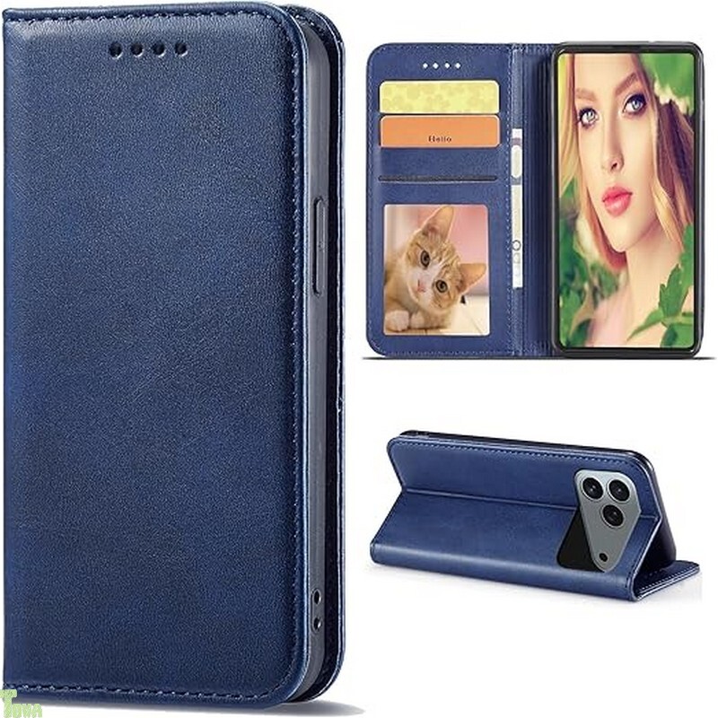 ブルー 手帳型 シンプル 高品質 PU + TPU アイフォン iPhone 17 Pro 保護 財布型 スタンド機能 カード収納 ケース カバー