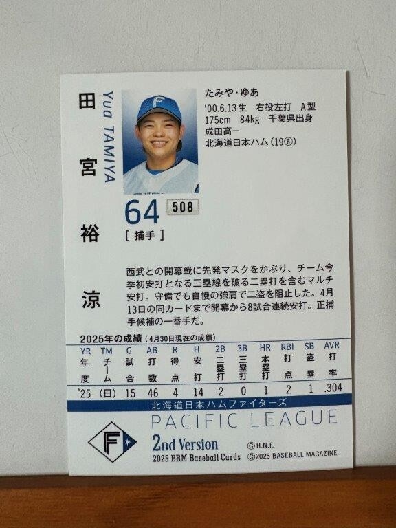 【2025 BBM 2nd】508田宮裕涼(北海道日本ハムファイターズ)レギュラーカード※キラカード版