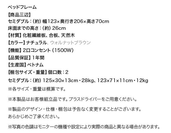 ![]() 棚・コンセント付きデザインすのこベッド Camille カミーユ ベッドフレームのみ セミダブル ナチュラル ![]() 配送について 納期:入金確認後4営業日内(土日祝除く)に発送いたします。 ※お支払いは、代引き不可となります。 ※お届けは玄関渡しです。他の商品と同梱はできません。 ※北海道へのお届けは送料が発生します。 沖縄・離島は配送不可ですので、予めご了承ください。 離島について:本州・本島などと橋でつながっている場合にも該当致します。 その他一部地域についてお届けができかねる場合があります。 お届け地域についてご不明な点は、ご注文前に質問欄よりお問い合せくださいませ。 内容によりましては、返答にお時間を要する場合がございます。 在庫状況について ・在庫状況は日々変動しており、お支払いのタイミングによっては メーカー在庫が欠品となる場合がございます。 ・生産状況や同時注文等により、欠品となる場合もございます。 ・在庫切れの場合はキャンセルとしてお受けいたします。 ・最新の在庫状況のご確認は、質問欄よりお問い合せくださいませ。 ご注意ください ・土日祝はお休みさせていただきます。 ・初期不良の場合はお届け後1週間以内に限り返品交換対応可能です。 ・到着後、破損不良等の有無をお確かめ下さい。 ・返品・交換は、配送時の梱包のまま使用いただくようお願いします。 なお梱包材が無い場合でのお引取りはできませんのでご注意下さい。 ・お客様都合によるイメージ違い、サイズ間違い等の事由では、 交換・返品・キャンセル等お受けできません。 ご不明点などありましたらお気軽にお問い合わせください。 すぐにお返事できない場合もございますので、余裕をもってのお問い合せをお願い致します。 b500041846nt 100051603 |