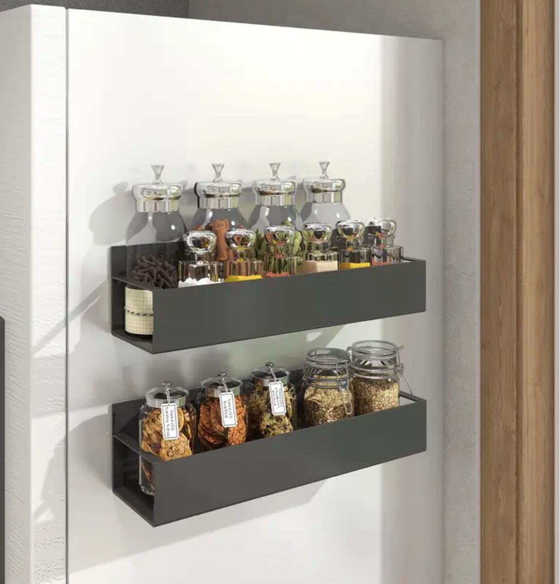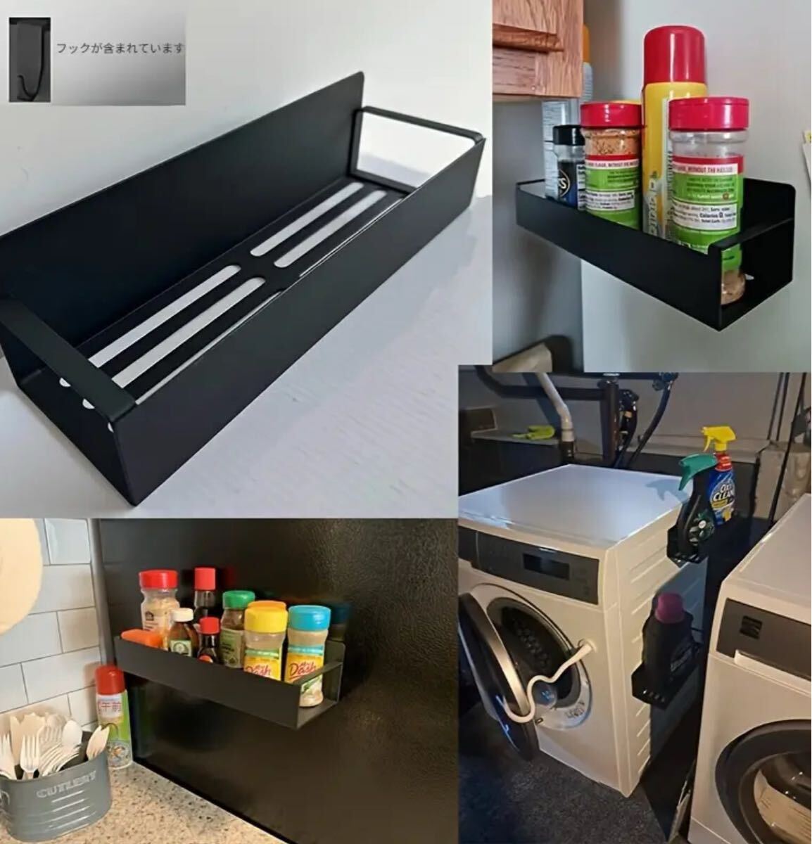 LDQ マグネット式サイド収納ラック 2個セット ドリル不要の壁掛けスパイスホルダー 冷蔵庫・洗濯機用 メタル グレーフィニッシュ 実用的な収納ラック ブラック