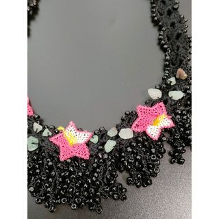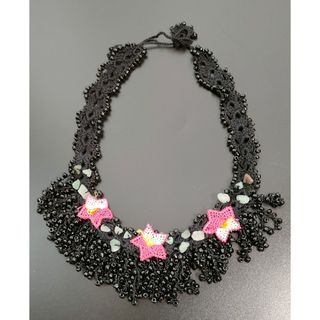 ブラック オヤ刺繍 ブラックビーズ ネックレス ストーン ピンク ベリーダンス