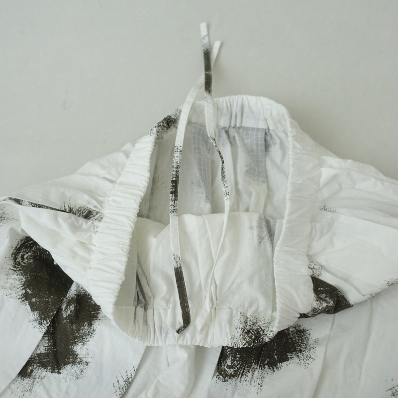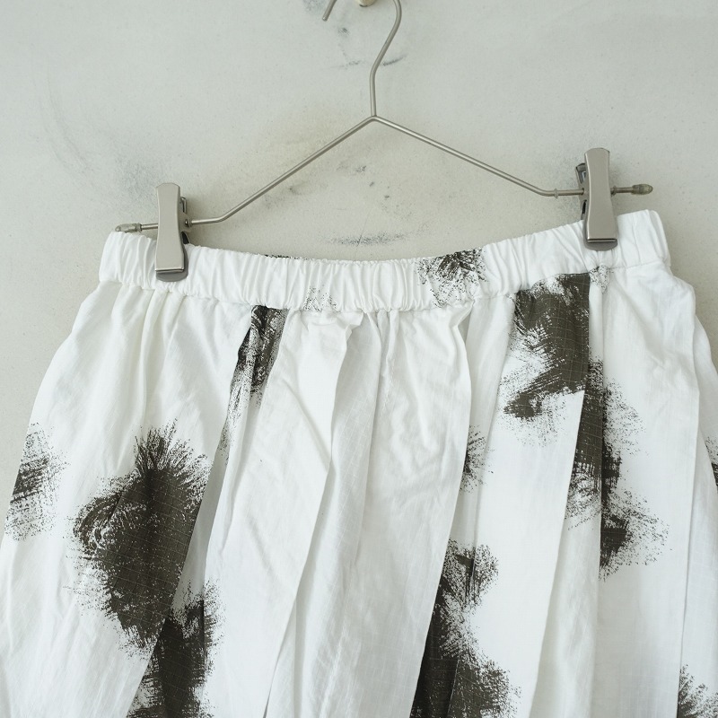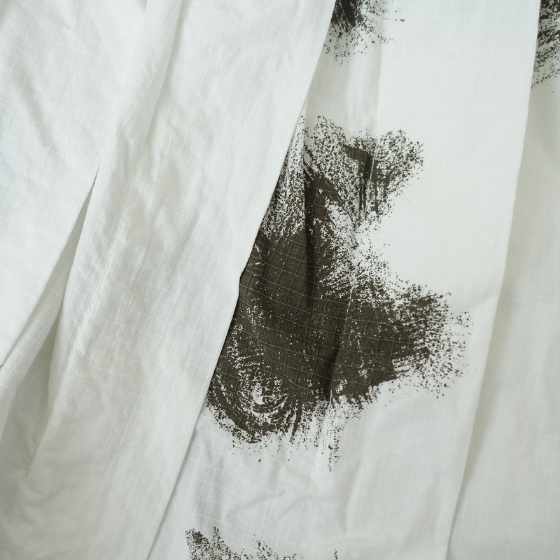 | 2025年SSコレクションJOURNAL STANDARD LUXEのConny’s CLOSET スカートです。カラーはホワイト×カーキグレーで、リップストップ地にユーロミリタリーのカモフラージュ柄がプリントされております。ウエストはゴム&ひも入り、フロントウエスト部にタック入りで、両サイドにシームポケットが付いております。定価(メーカー希望小売価格)20,900円 税込みの商品です。 |