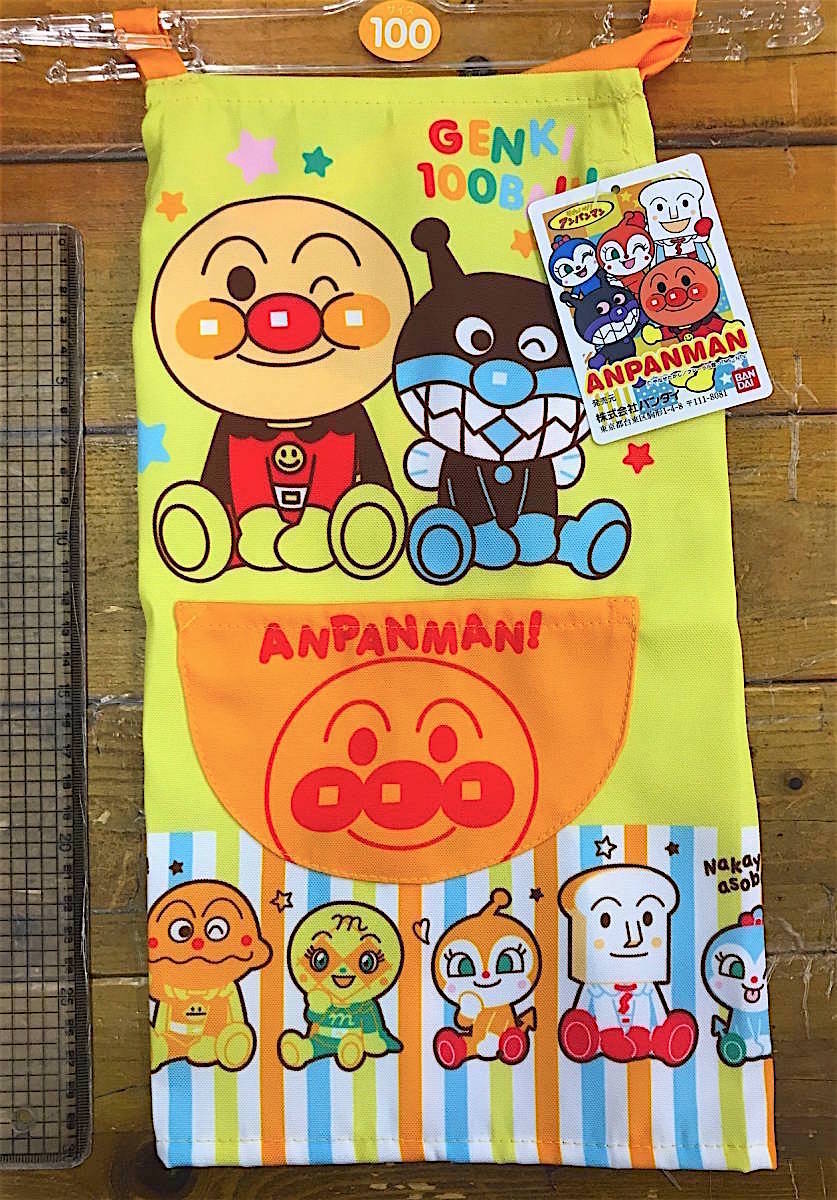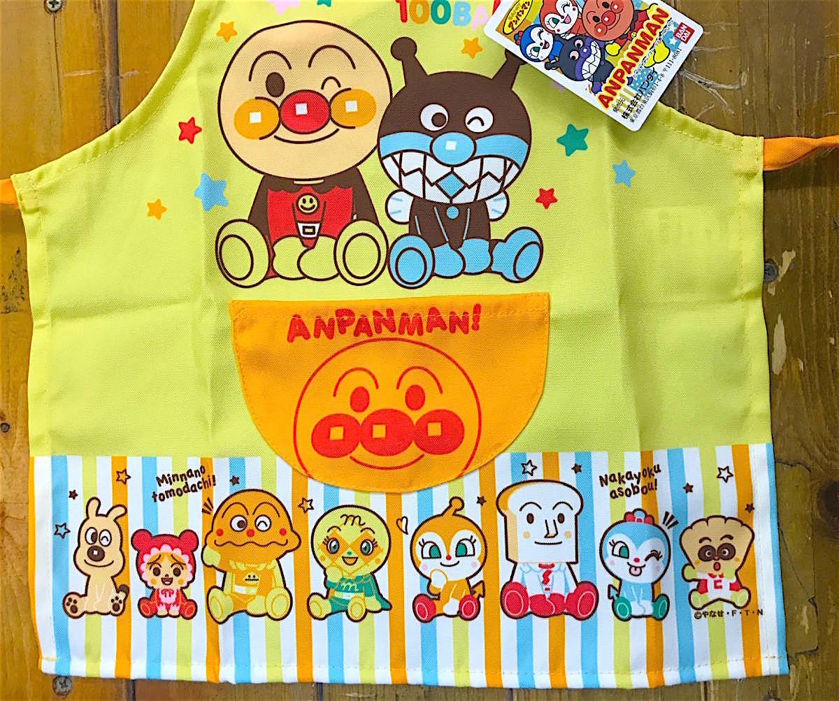 即決 新品タグ付アンパンマン GENKI 100BAI★アンパンマンファミリー柄★子供用エプロン★100cm ¥990★お餅つき会や料理のお手伝い用に