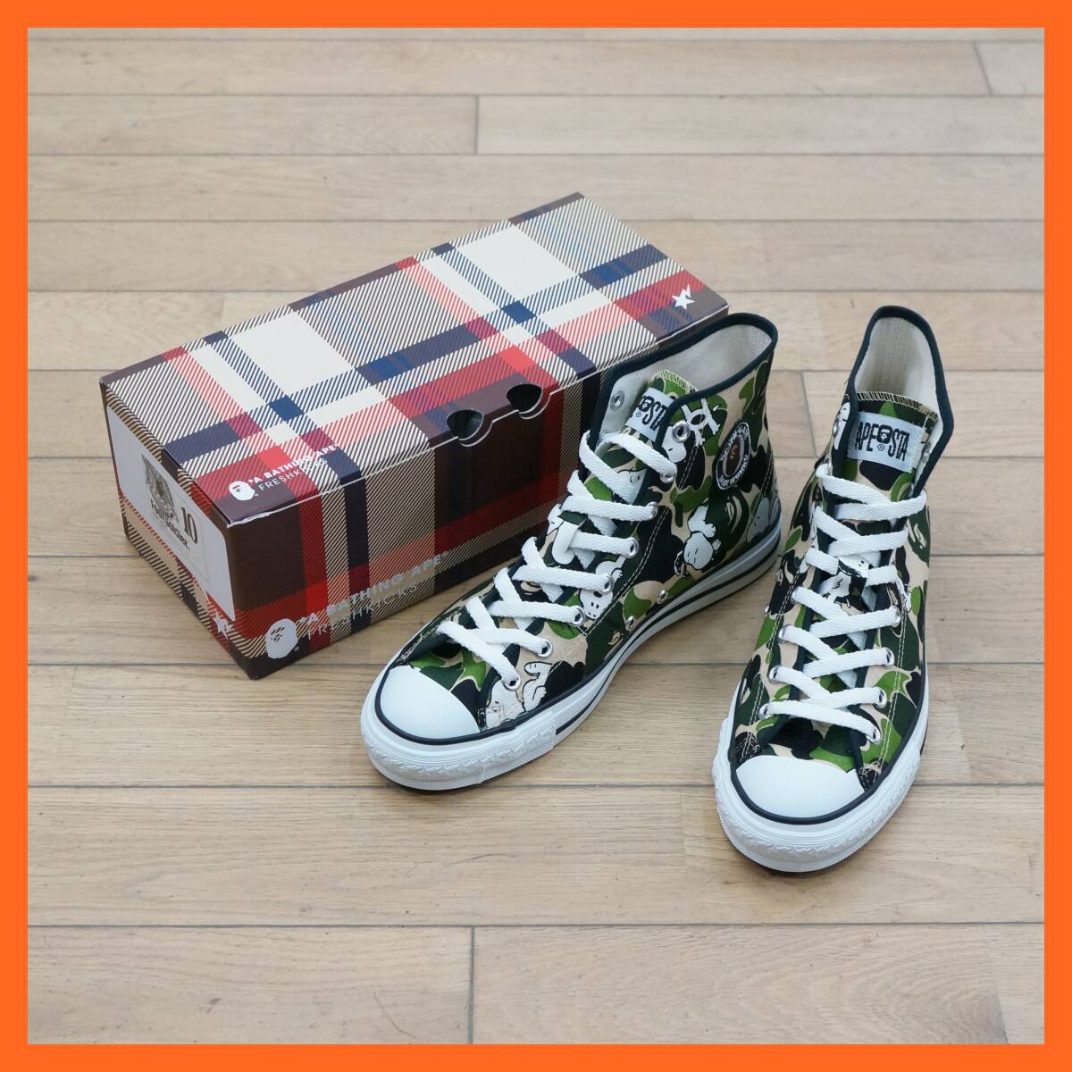 ■東ハ:未使用【ピーナッツ×ア ベイシング エイプ/A BATHING APE 】APE STA HI スニーカー カモ×スヌーピー 28.0㎝ ベイプ ★送料無料★■ ア ベイシング エイプ(A BATHING APE)とピーナッツ(PEANUTS)のコラボレーション。 エイプ、スヌーピーといった両ブランドを代表するアイコンを描いたモデルです。 【詳細】 ・メーカー:A BATHING APE/ア ベイシング エイプ ・種類:APE STA HI スニーカー ・カラー:カモ×スヌーピー ・サイズ:28.0cm 開封済みの未使用品となります♪ 付属品は写真にあるものが全てです。 保管に伴う外箱にケズレなどがございます。 商品画像をよくご確認の上、ご参加ください。 [管理No.25091289R1] |