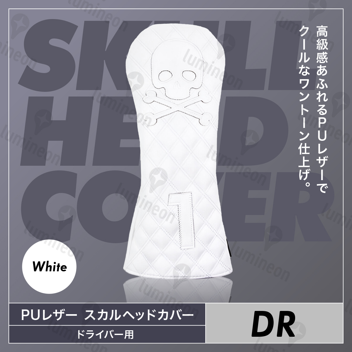 ゴルフ ヘッド カバー クラブ レザー ドライバー 用 用品 コンペ 景品 便利 グッズ 人気 アクセサリー おしゃれ 小物 スカル 白 g267c1 2