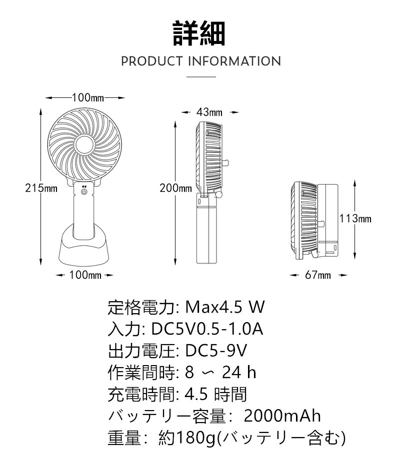 超静音 USB扇風 折り畳みスタンド機能 3段階風量調節 卓上扇風機 グリップ扇風機 携帯扇風機 手持ち扇風機 充電式 ハンディファン USBファン ミニ 小型 熱中症 暑さ対策 オフィス アウトドア用
