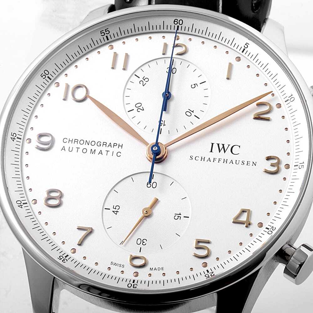 | モデル情報 | 通称「金針」と呼ばれる"ポルトギーゼ"が入荷致しました。すっきりとしたシルバーダイアル、針とアラビアインデックスのゴールドが綺麗なモデルです。1930年代にポルトガルの時計商がIWCに発注した事がポルトギーゼの始まりと言われており、今ではIWCを代表するシリーズとなっています。なお、この人気モデルは2011年にピンバックルから、より実用性が高いフォールディング・バックルにマイナーチェンジされました。 |