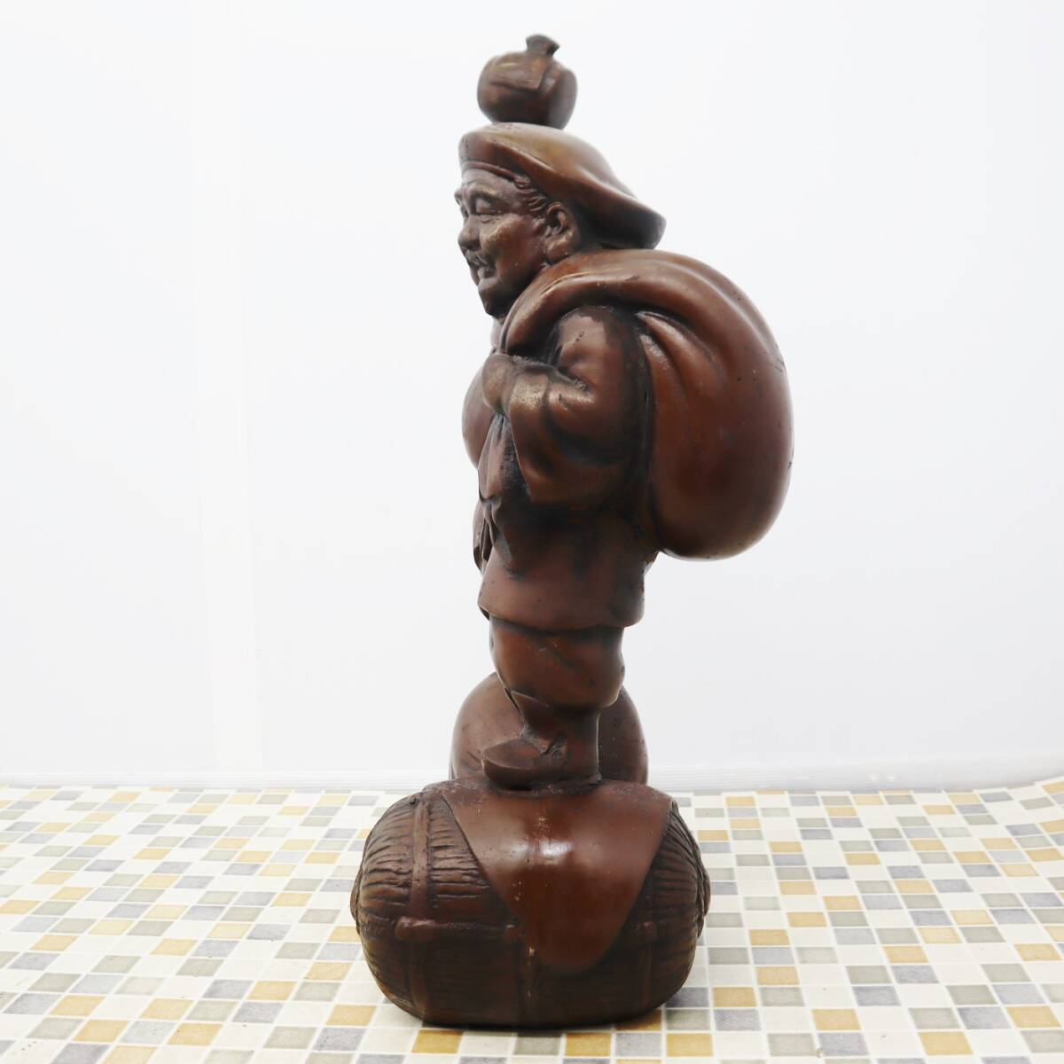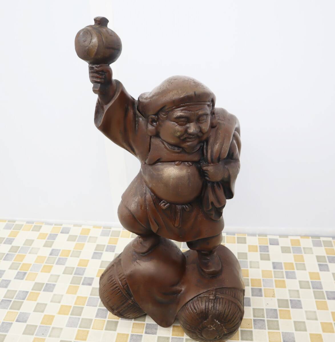 ▽お金の神様 商売繁盛 縁起物 高さ約67cm 重量21kg|大黒天 大黒様 鉄 金属製| | 経年劣化あり レトロ 骨董■P4504の出品です!