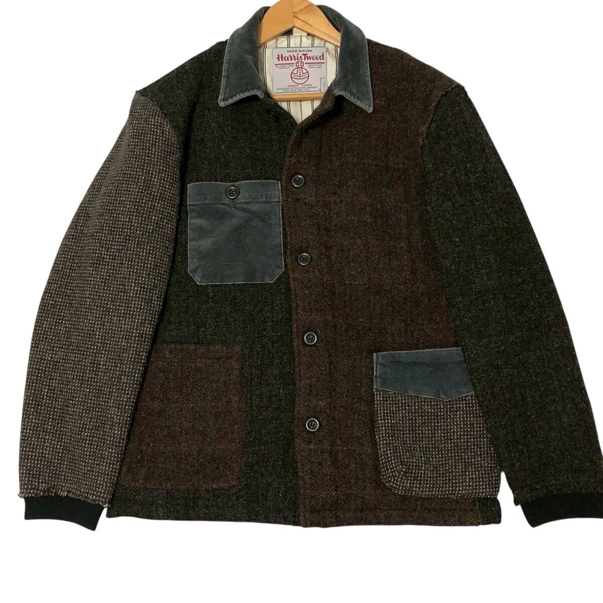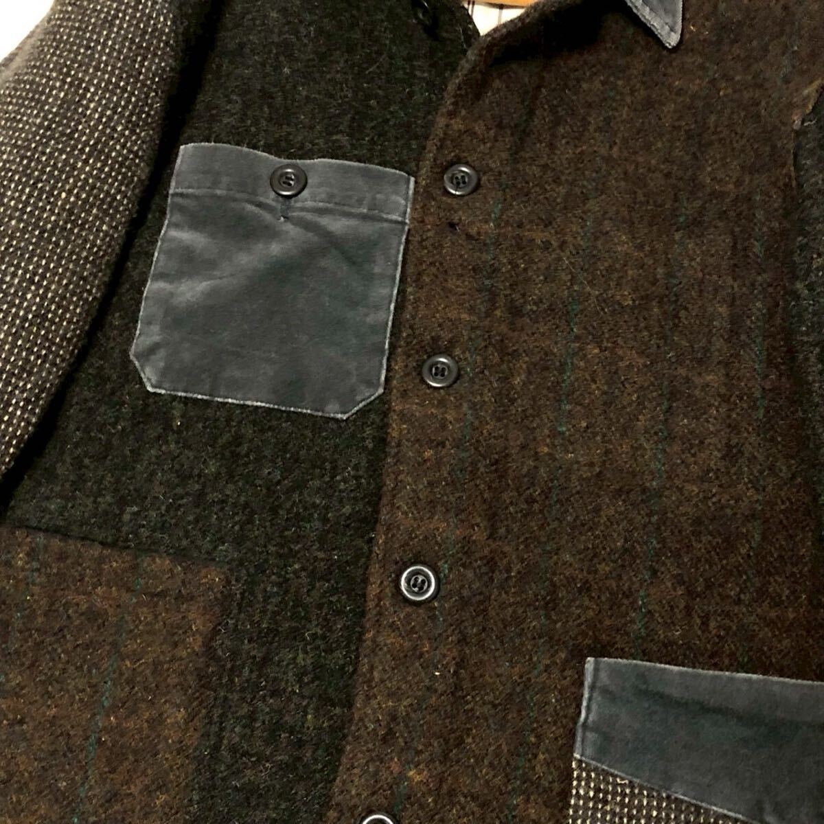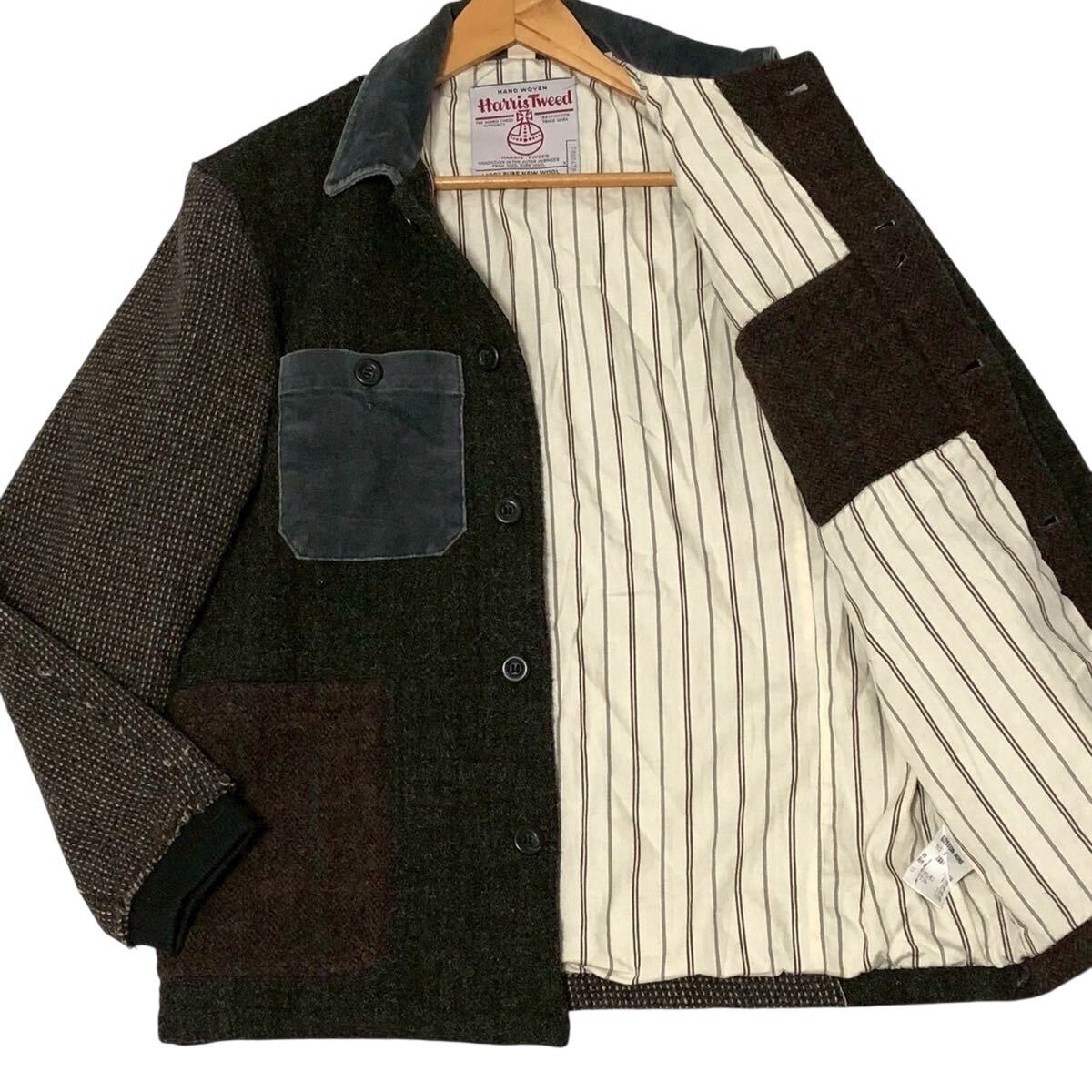 超希少◎クレイジーパターン◎BOSTON-NINE × Harris Tweed ジャケット ブルゾン パッチワーク Mサイズ カバオール ハリスツイード メンズ