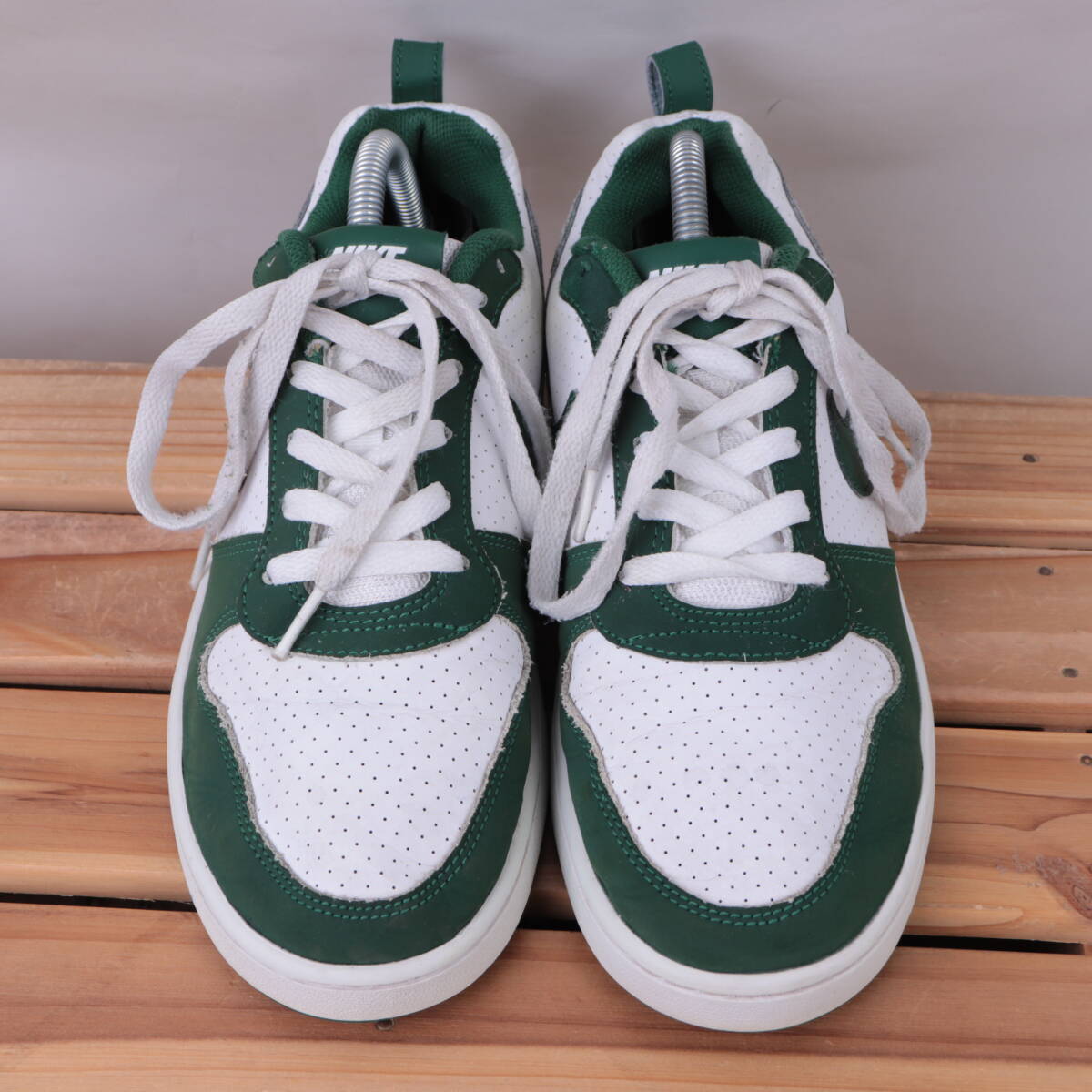z1940 ナイキ コート バーロウ ロー US7.5 25.5cm/白 ホワイト 緑 NIKE COURT BOROUGH LOW メンズ スニーカー 中古