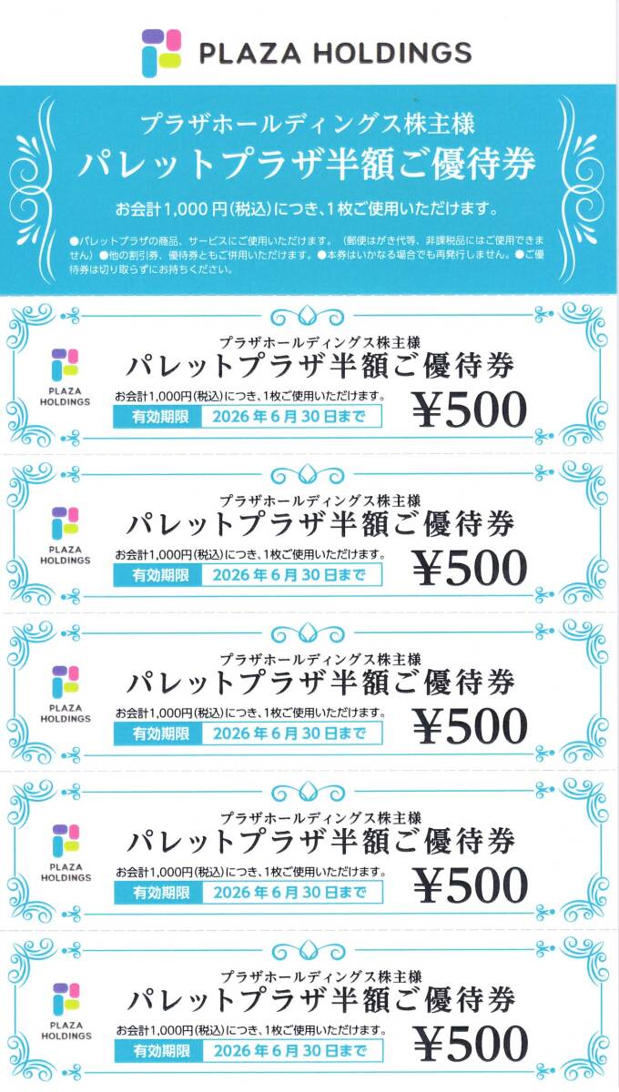 プラザホールディングス株主優待券で合計5000円分(500円×10枚)の価格です。