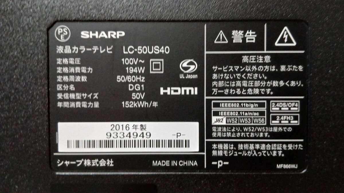 某家電量販店にて2017年3月に新品購入したテレビになります。