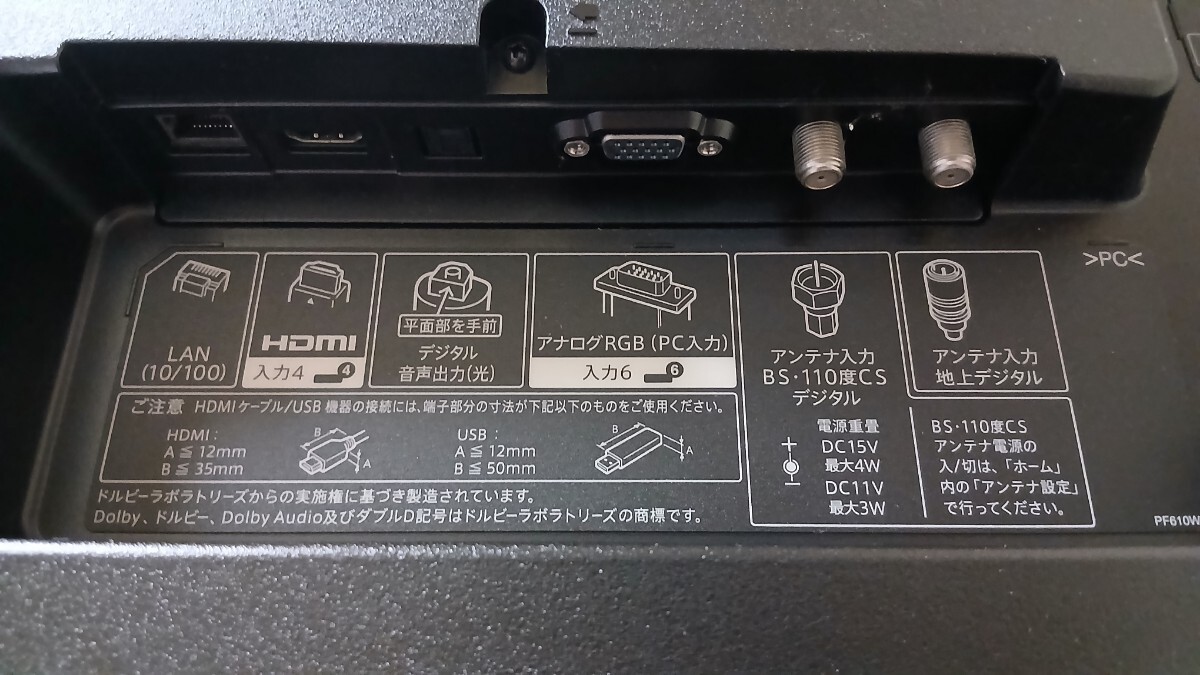 ・端子:HDMI×4系統(※入力1:HDR入力対応)、PC入力×1、USB×2