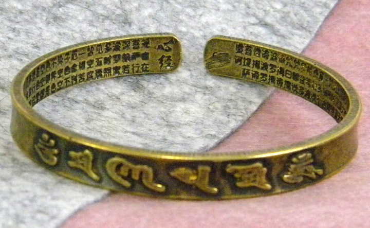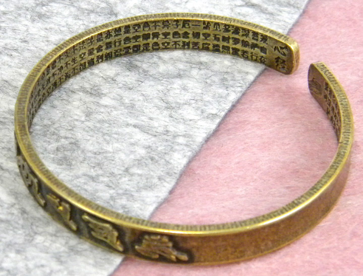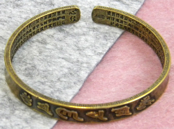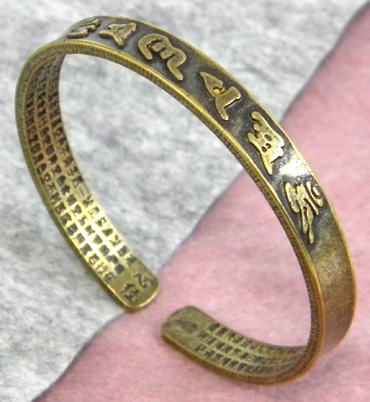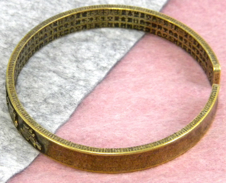 ◆ ヴィンテージ加工 アンティーク調 / 六字真言 六字大明呪 般若心経 / バングル ブレスレット 銅 ◆ 送料無料 ◆