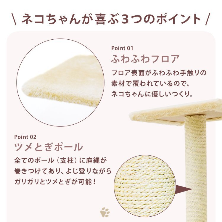 上下運動でストレス解消! 長ーく使える置き型タイプのキャットタワー!! 支柱は爪とぎできるタイプでネコちゃんのストレス解消に。 トンネル付きでゆっくりとくつろげます! ★Point1:すぐに設置できる イラスト説明書付で誰でも簡単に組み立て可能! ★Point2:運動不足予防に 日常的に上がり下がりをすることで、室内飼いのネコちゃんの運動不足解消につながります! ★Point3:高い場所に上がれる ネコちゃんは高くて狭い場所もお気に入り♪ 高い場所から外の景色を眺めたりするのもストレス発散に繋がります。 ■商品コード:PT0011A ■商品仕様 カラー:ベージュ サイズ(約) 全体:幅51×奥行46×高さ84cm ※最大サイズ 台座:幅45×奥行46cm 重量:(約)7kg 耐荷重:(約)15kg 材質:紙管、麻、パーティクルボード 他 ■内容 ・キャットタワー本体 ×1(組み立て必要) ・組み立て用工具一式(ボルト、六角レンチ) ■注意事項 ・組み立て式(未完成品)です。 ・製品は接着剤や麻の臭いがすることがあります。臭いが気になりましたら、風通しの良いところで陰干しして下さい。 ・凸凹のある床、柔らかい材質・滑りやすい場所では倒れたりする危険がありますので設置しないようお願いします。 ・麻の材質上、繊維クズが出ますが不良ではございません。 ・大型商品なので大人2人以上での組み立てをお勧めします。 ・写真と実物は多少異なる場合がございます。あらかじめご了承下さい。 ■保障期間 7日間 ※商品到着後7日以内の初期不良・破損のみご対応させていただきます。 【新品未使用品です】 |