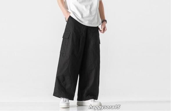 カーゴパンツ メンズ ワイドパンツ バギーパンツ サルエルパンツ 通気性 作業着 ミリタリー カジュアル アウトドア ブラック 4XL