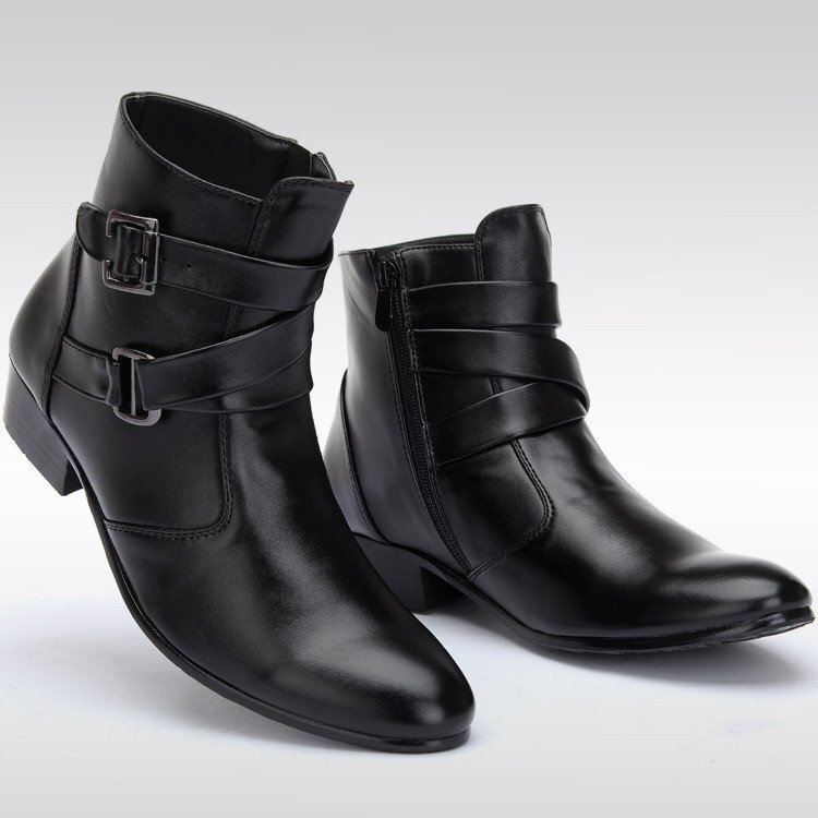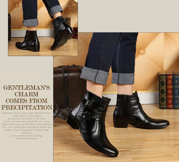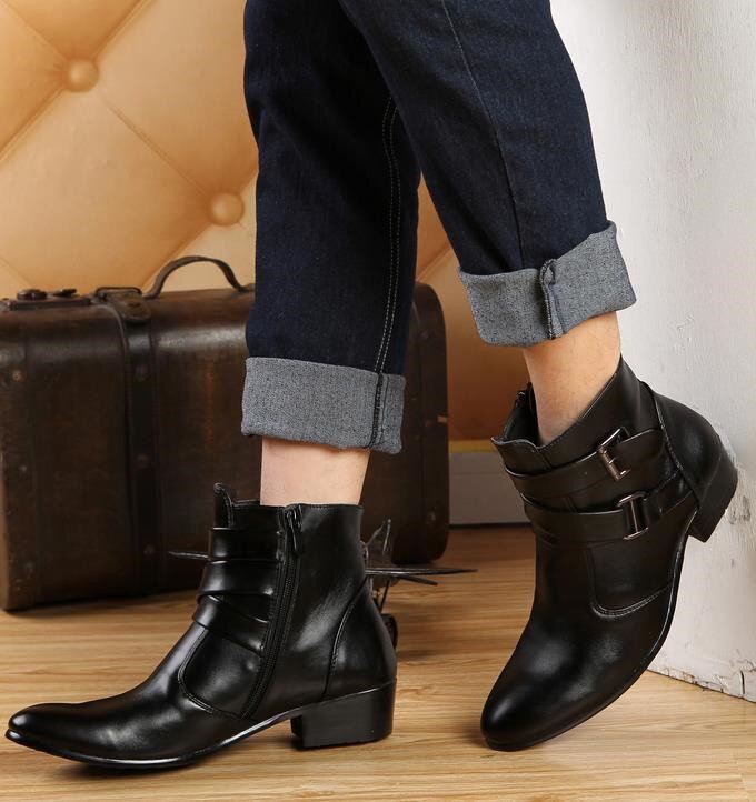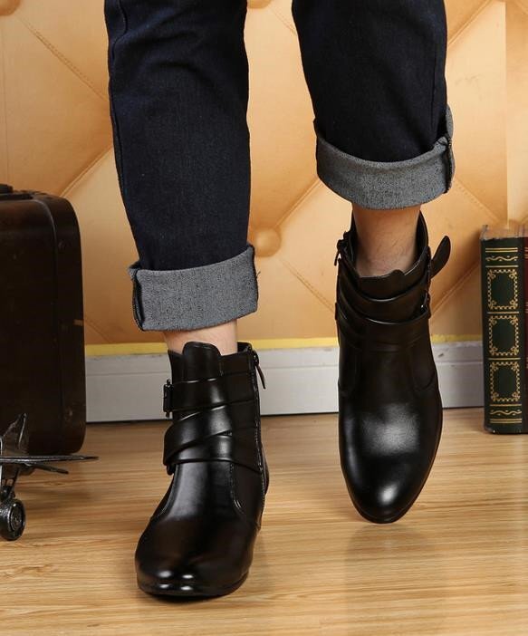 メンズ ショートブーツ シークレット 6.5 cm身長UP サイドジップ ブーツ スムース イギリス風 お兄系 黒 24.5cm