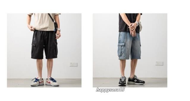 デニムショートパンツ メンズ ハーフパンツ ジーンズ Gパンツ 半ズボン 膝上 短パン ボトムス 5分丈 ブラック XL