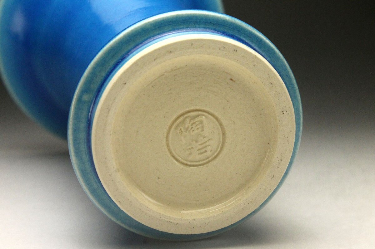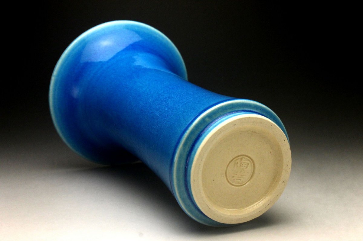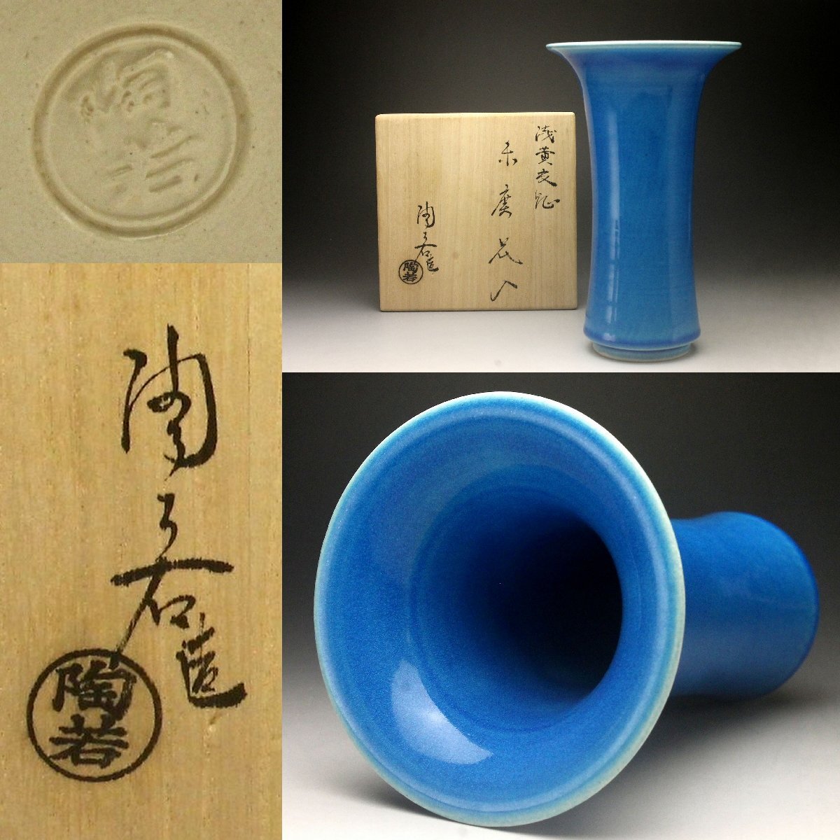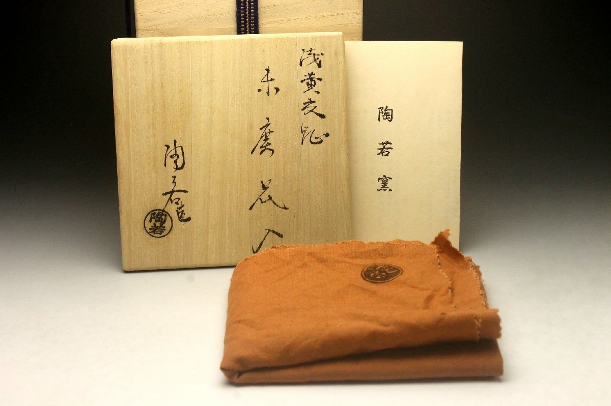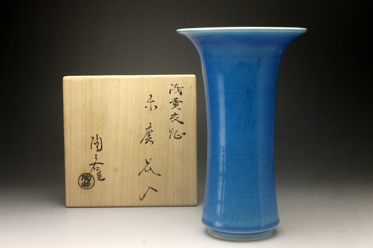 【余韻】 能勢進 陶若窯 浅黄交趾 末廣花入★華道具 無傷美品 栞 共布 共箱 永楽善五郎<同梱可>
