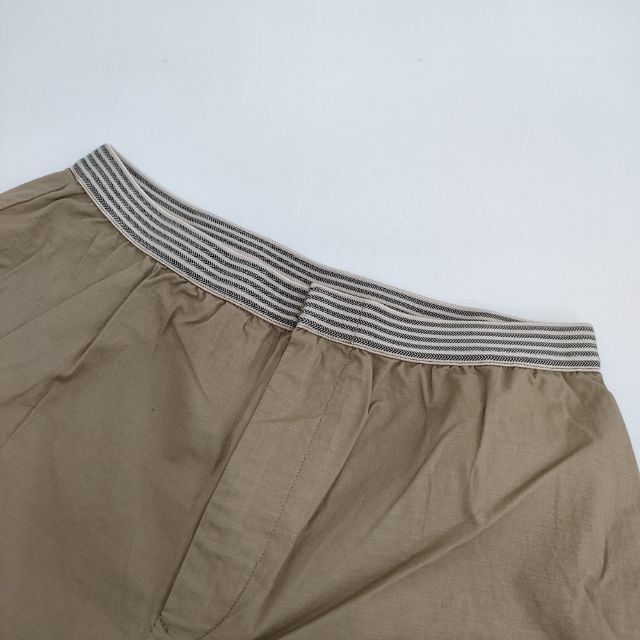 | 仕様 | フロント:ジップ ポケット:なし 透け感:なし 裾:シングルステッチ ウエスト調整:ゴム(紐なし) 裏地:なし |