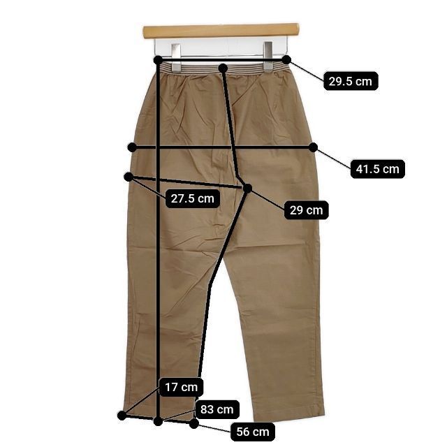 | 実寸サイズ | 総丈:約83cm ウエスト:約29.5cm ウエスト最長:約43cm 股上:約29cm 股下:約56cm ヒップ:約41.5cm ワタリ幅:約27.5cm 裾幅:約17cm ※採寸画像がある商品はハンガーに吊るした状態での計測のため、平置きでの採寸とは差が生じる場合がございます。平置きでの実寸サイズをご希望の場合は、ご購入前に必ずご質問ください。 ※記載以外のサイズが合わないことを理由とした返品はできませんので、 記載部分以外で実寸サイズの気になる箇所があれば必ず購入前にご質問ください。 |