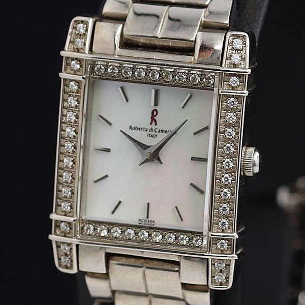 稼働 良品 ロベルタディカメリーノ QZ 901.0371.2 ホワイトシェル文字盤 石付 スクエア レディース腕時計 OGI