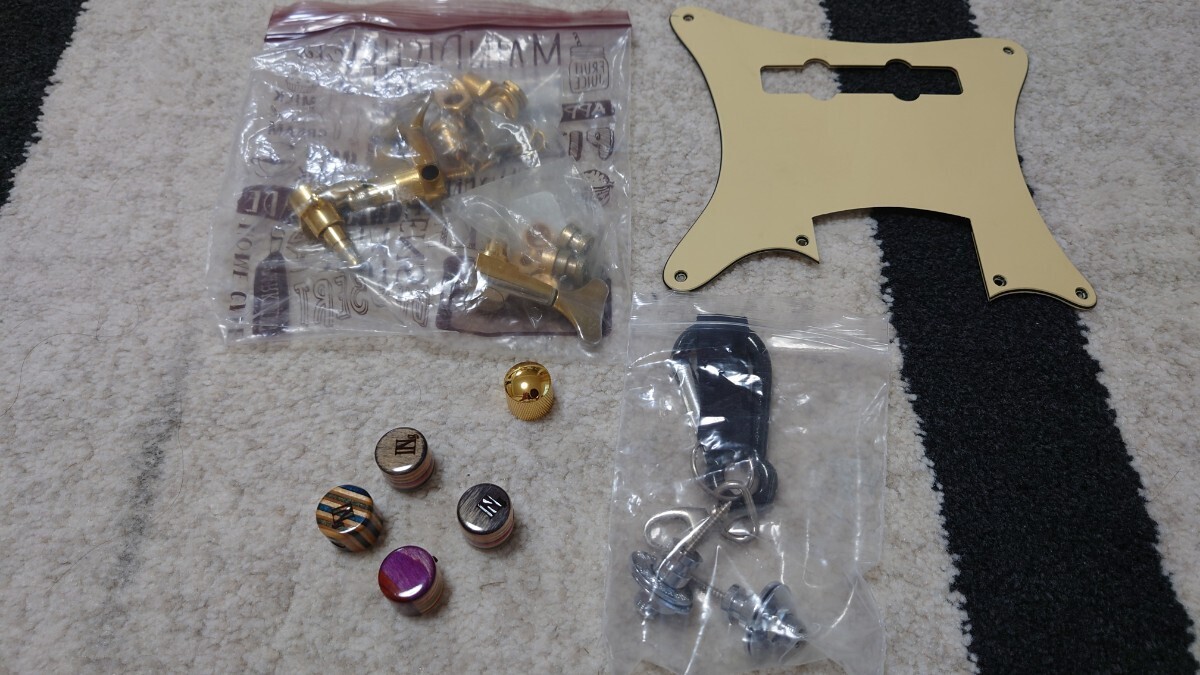 ノブについてはゴールドが3つしか入手できなかったので、トーンが一つツマミ無しになってます。自分はトーン使わないので支障なかったですが、ツマミを4つ付けたい場合は、前オーナーが付けてたノブ(非純正)を同封しますので付け替えて下さい。