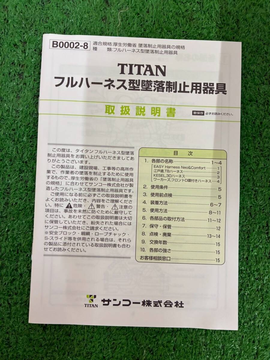 TKR7I-6-⑤/未使用品/サンコー/TITAN/タイタン/フルハーネス型/墜落制止用器具/SSL-M-01/青/Mサイズの出品です。