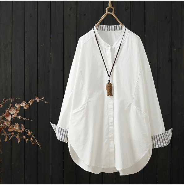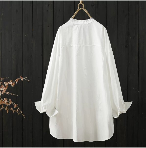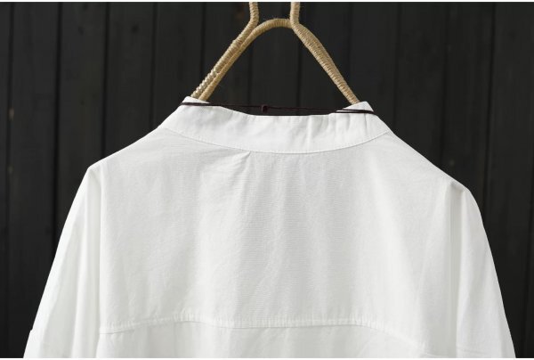 zy カーディガン ゆったり フリーサイズ ワイシャツ チュニック トップス 綿100% 大人可愛 ナチュラル ホワイト