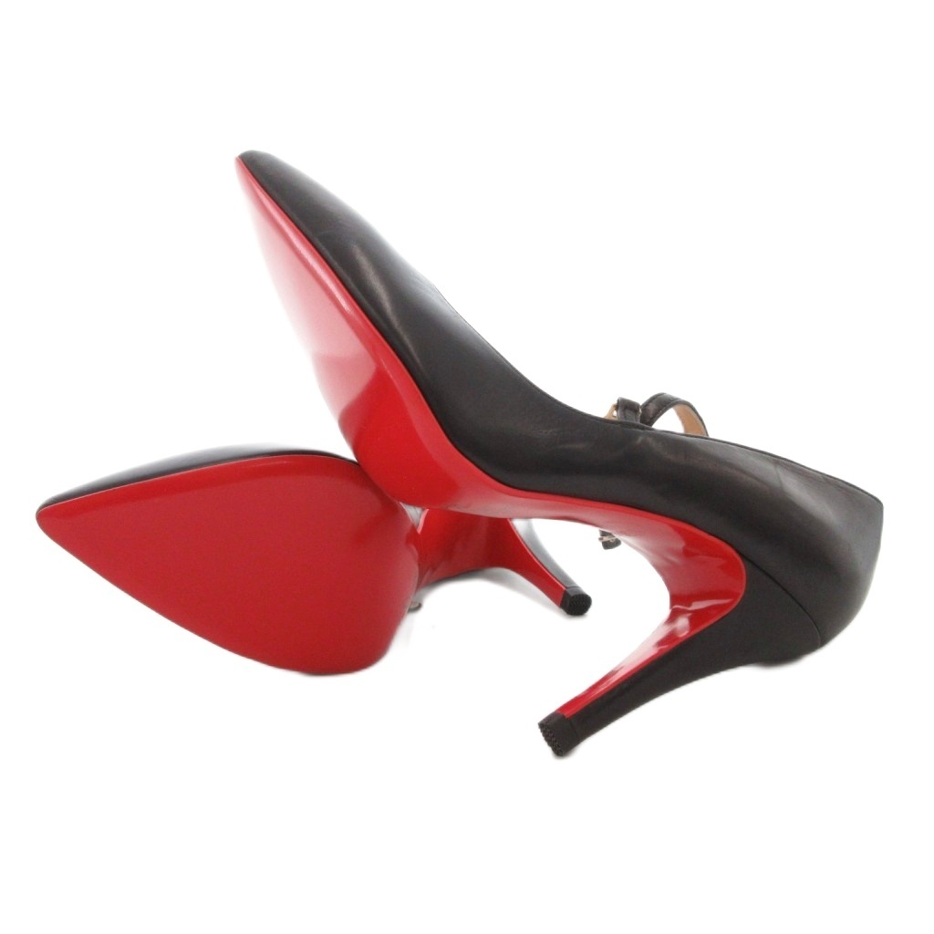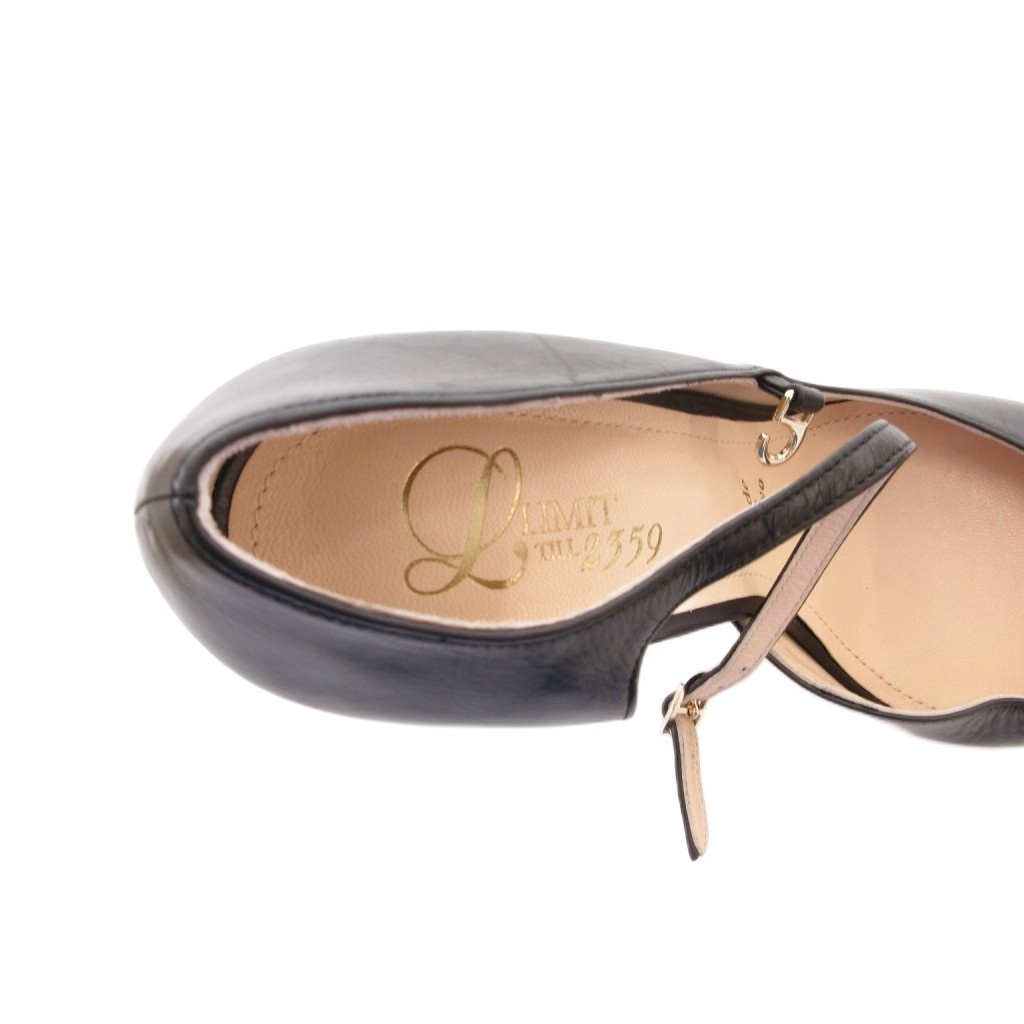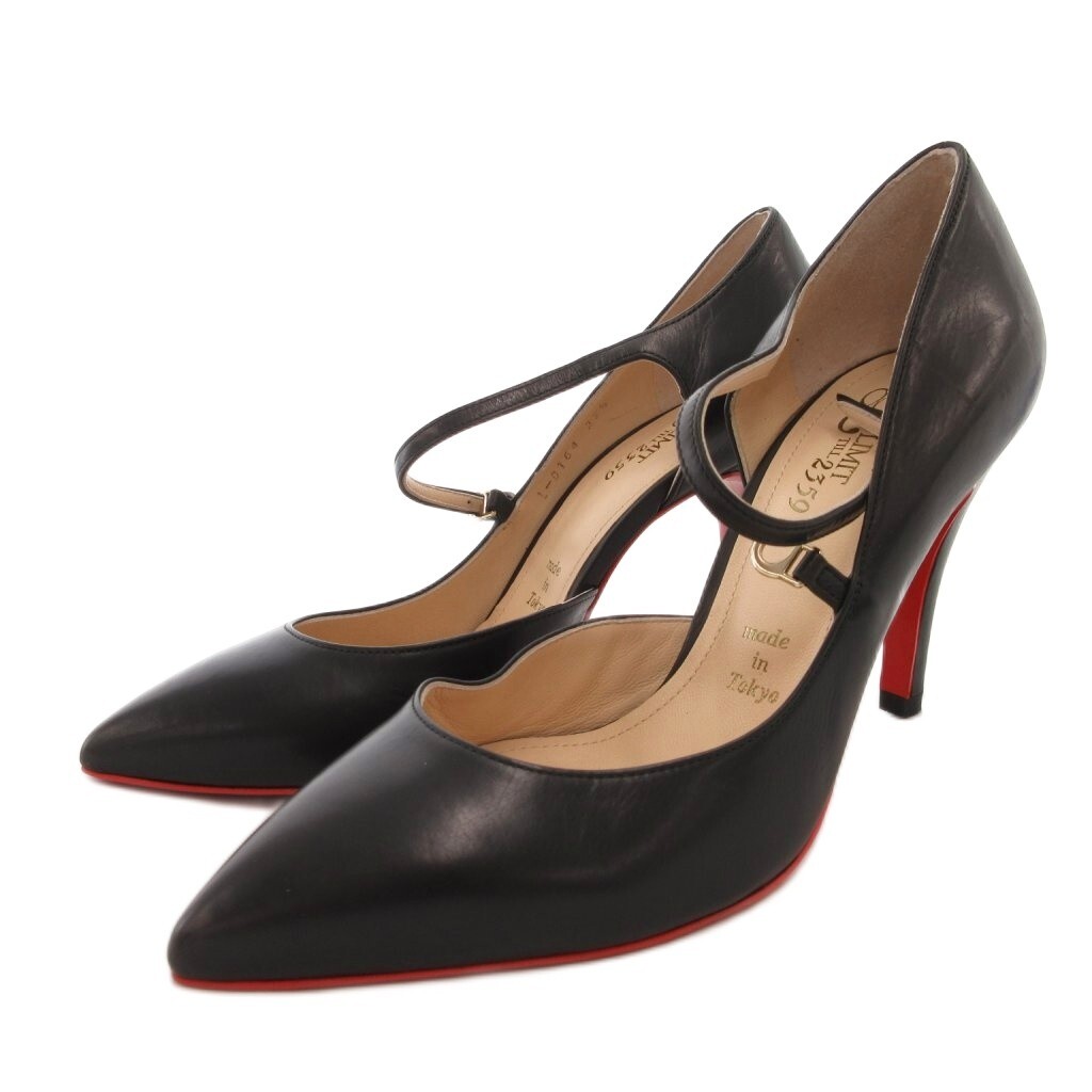 LIMIT TILL リミット ティル 美品 バイアスストラップパンプス ポインテッドトゥ ヒール 22.5 黒 ブラック /FF レディース